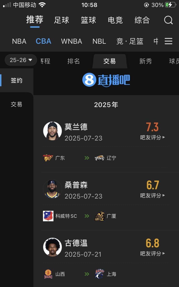 莫兰德确定回归辽宁队之后,在吧友的评分涨了很多!这说明辽宁球迷都很喜欢他,大莫拿