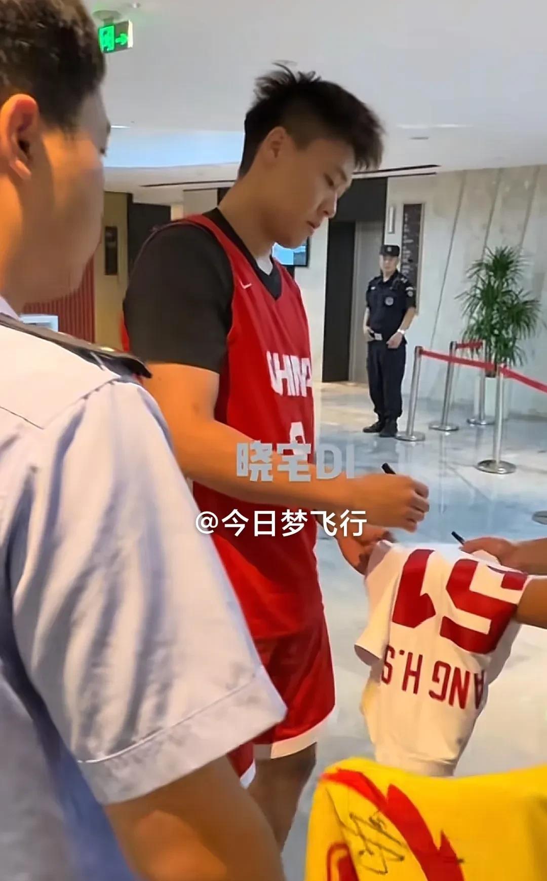 赵队今早去上训,主动为球迷签名! 昨晚,中国男篮28分大胜委内瑞拉,赵睿三个三分贡献13分3篮板3助攻。 今天早上九点,球队出发去赛前训练。赵睿从电梯下来,大胜之后心情大好吧,特意走向旁边蹲守的球迷,主动为球迷签名。签字笔不慎掉在地上,赵睿弯下腰捡起笔,耐心地为球迷签名。签不完!在安保叔叔的干预护卫下,赵睿才出门去上大巴。 今晚,中国男篮将与委内瑞拉队进行第二场热身赛。随后前往南京与黑山国家队打两场热身赛。