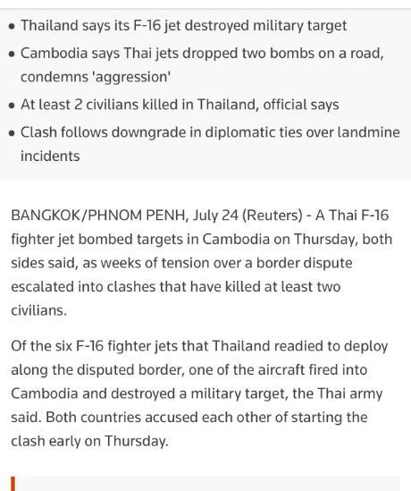 柬埔寨为什么非要惹泰国?明明实力不对称,为何不服软!泰国空军的F16战机起飞,还在炸弹上写字,问候柬埔寨领导人洪森。泰国解释是柬埔寨军队的火箭炮,实在是炮火猛烈,打的泰泰国地面部队无力招架,所以只能派出F16战机,对柬埔寨地面军队进行空袭,这下战争彻底升级。真的是太乱了,何必呢? 柬埔寨的实力,确实无法与泰国相比,无论是综合实力,还是个体实力,全部都落入下风,唯独就是柬埔寨的洪森前首相,经历过柬埔寨内战时期的上百场战斗,形成了非常强大的实力。但是个体实力再强,也无法弥补柬埔寨的巨大的国力差距,这也是事实。 由于各种各样的原因,柬埔寨现在需要通过战争,来强化洪森父子的位置和权力,然后战争也会被控制在一定的烈度之内,不会大规模爆发,只会小规模的在边境对峙。 打完之后,双方会在某一个节点,进行适当的谈判。但是肯定会是在第三国谈判,希望这个时候的昆明,又到了发挥实力的时候。因为昆明也算是东南亚地区比较近的城市,距离柬埔寨和泰国都比较近。 柬埔寨需要一个调停方,而咱们就是最佳谈判的载体,我们一定会不偏不倚,不像大鹅给阿塞拜疆和亚美尼亚谈判一样,谈着谈着,打得更更狠了。 我们一定要吸取大鹅的教训,把柬埔寨和泰国的情绪安抚好,一定不要继续打,而是要本着睦邻友好的态度,一起发展经济,这才是最重要的。要不然后续再打起来的话,真的是相当地难以接受。