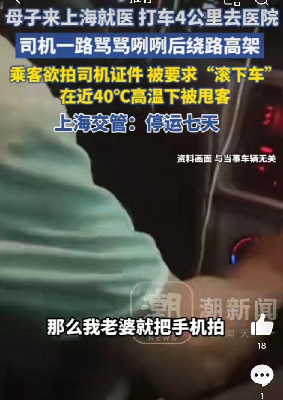 最新消息:上海那个在40度高温下半路甩客的出租车司机,有可能被吊销从业资格证。