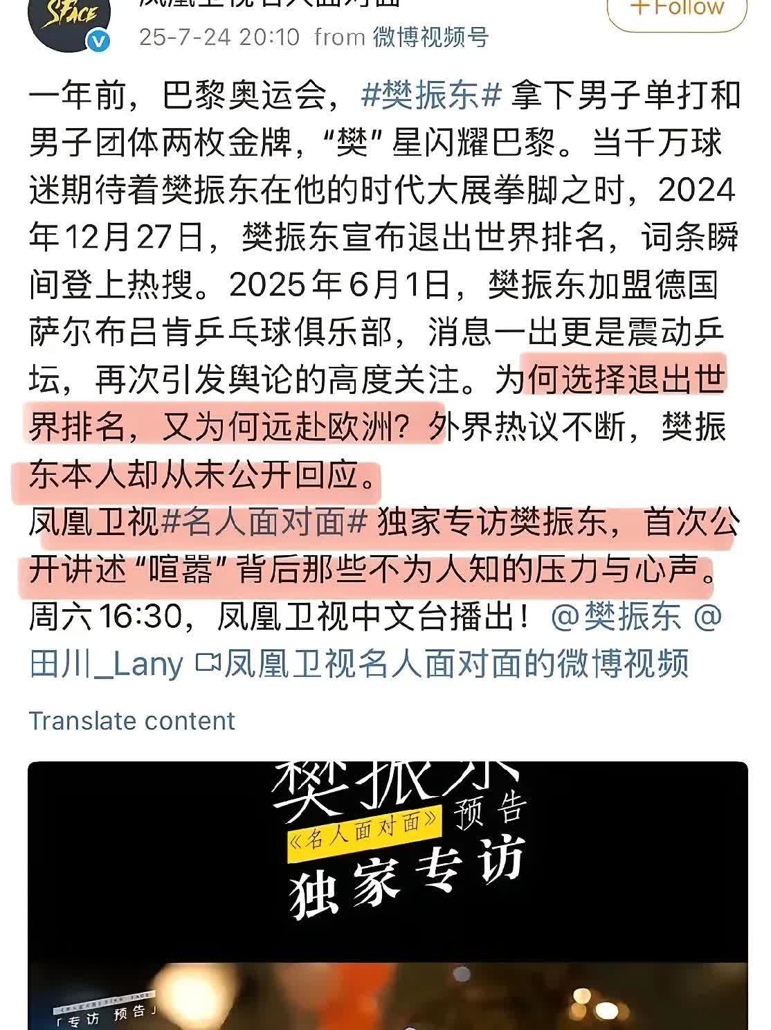 独家剧透,樊振东不忍了!这周六接受东方卫视独家专访! 为何退出wtt世界排