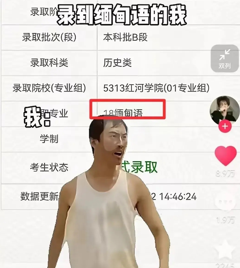 真的是天都要塌了,贵州一高考生被录取到红河学院小语种专业,学习缅甸语。 有网友调