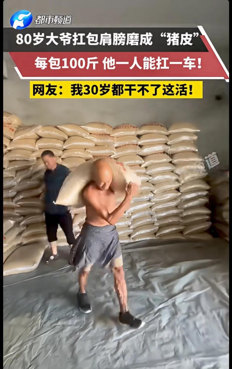 用人肉换猪肉吃!80岁大爷常年扛包,肩膀上磨出了厚厚的猪皮状!如今,岁数大了,感