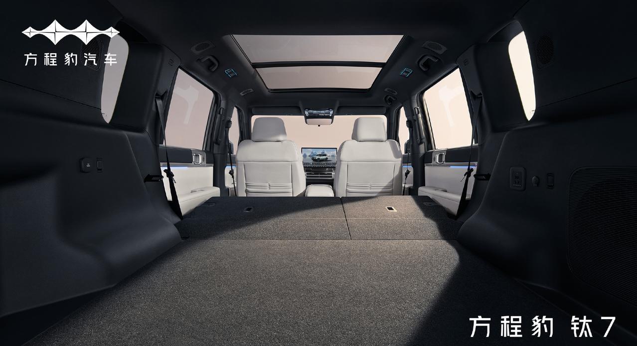 两个内饰色,够大,够能装。方程豹钛7车内空间图曝光,近乎纯平和超大容积的后排空间