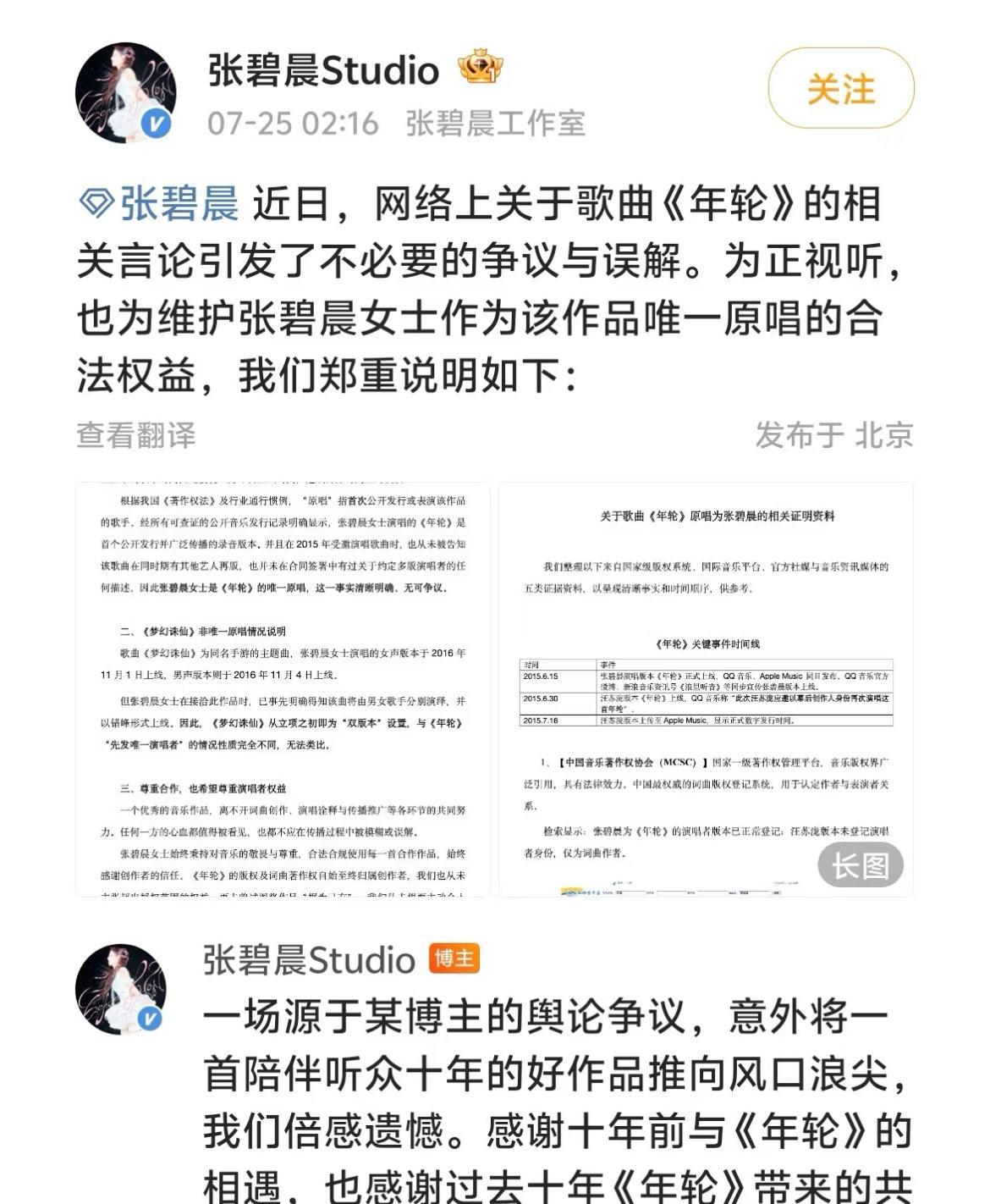 有人说汪苏泷是“见好就收”?太小看汪苏泷了吧,他不止给张碧晨一个人写过歌,只收《年轮》,可能是真的被气到了,罪魁祸首还是旺仔小乔。 旺仔小乔:张碧晨原唱 汪苏泷粉丝:汪苏泷张碧晨双原唱 张碧晨:唯一原唱 汪苏泷:都别唱了 这个道理很简单的,毕竟汪苏泷之前又不是没有给别人写过歌,好多歌都火了,人家也没有标榜说自己是原唱或者双演唱啊! 这件事情的本身就是因为汪苏泷感觉被背刺了,剧组和他们联系的时候就是说好了双原唱的,然后他唱的版本电视剧是比较靠后才放的,电视剧里都有放。 汪苏泷一直都强调双原唱,而张碧晨一方总是强调自己是唯一原唱,本来这个事情没闹大的话,汪苏泷方面也不在乎了,偏偏这次一个网红带了节奏,莫名其妙就炸了。 张碧晨一方又没有阻止那帮不明白的粉丝搞事,而汪一方又为了不想让那个网红唱,就先把版权收回来了,结果张的工作室也不知道抽了哪根筋,直接和汪撕破脸,才闹这么难看#汪苏泷年轮#