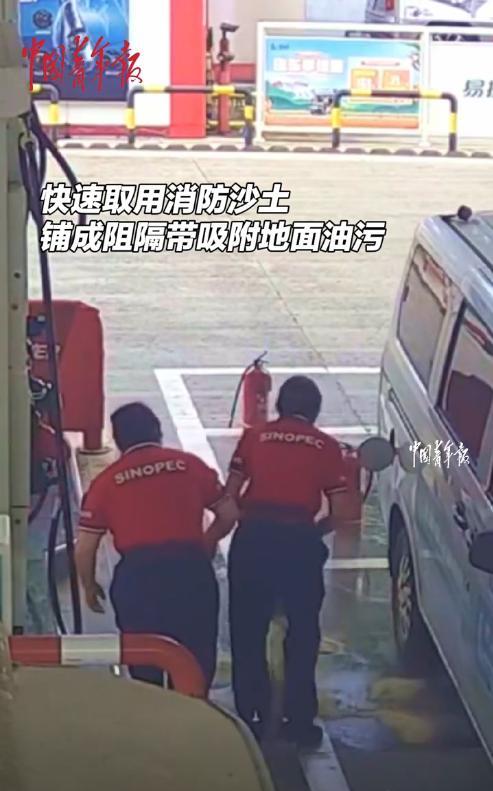 “这加油站火了!”7月23日,上海,男子开车加油时,突然油箱破裂,大量汽油洒落一地!加油员见状立即启动应急预案,一边切断电源、拿来灭火器和消防沙土,一边疏散加油的顾客,最后又将事故车辆挪走。仅用时3分钟,就将危机成功化解。网友:有条不紊,操作规范,太专业了! 咱们都知道,加油站附近是不能有明火的,而且在加油过程中,还禁止使用手机等电子设备,这是为了防止静电点燃汽油,毕竟汽油极易挥发,一旦被点燃,整个加油站瞬间成为一个炸弹! 这天,男子见车子的油快用完了,就开到加油站去加油,这辆车陪伴男子有些年头了,虽然有些费油,但他却舍不得更换,没想到这次加油却出了意外! 正加着油,突然从车底流出大量汽油,加油员发现后立即收起油枪并切断电源,更多的工作人员也开始朝这边赶。 大家有条不紊地进行着操作,有人提来灭火器,有人拉起警戒线疏散群众,有人倾倒消防沙土吸附泄露的汽油。 在工作人员的快速反应下,并没有引发大的事故,很快就又恢复了正常的营业。 经了解,男子车辆的油箱由于老化严重,导致了汽油泄露,万幸的是并没有燃起大火,不然后果不堪设想。 网友看后表示,这个加油站一看就非常重视安全,估计老板平时没少安排安全演练,这才能快速、有效的处理危机! 大家对于这件事是怎么看? 信息来源:《快稳准!汽车加油时突发油品泄露,员工3分钟应急操作,成功避免事故发生。》中国青年报