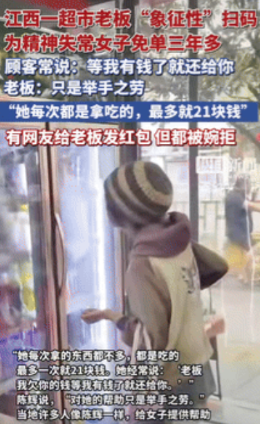 “这老板火了!”江西,一超市老板为精神失常女子免单3年多,每次只是“象征性”的扫