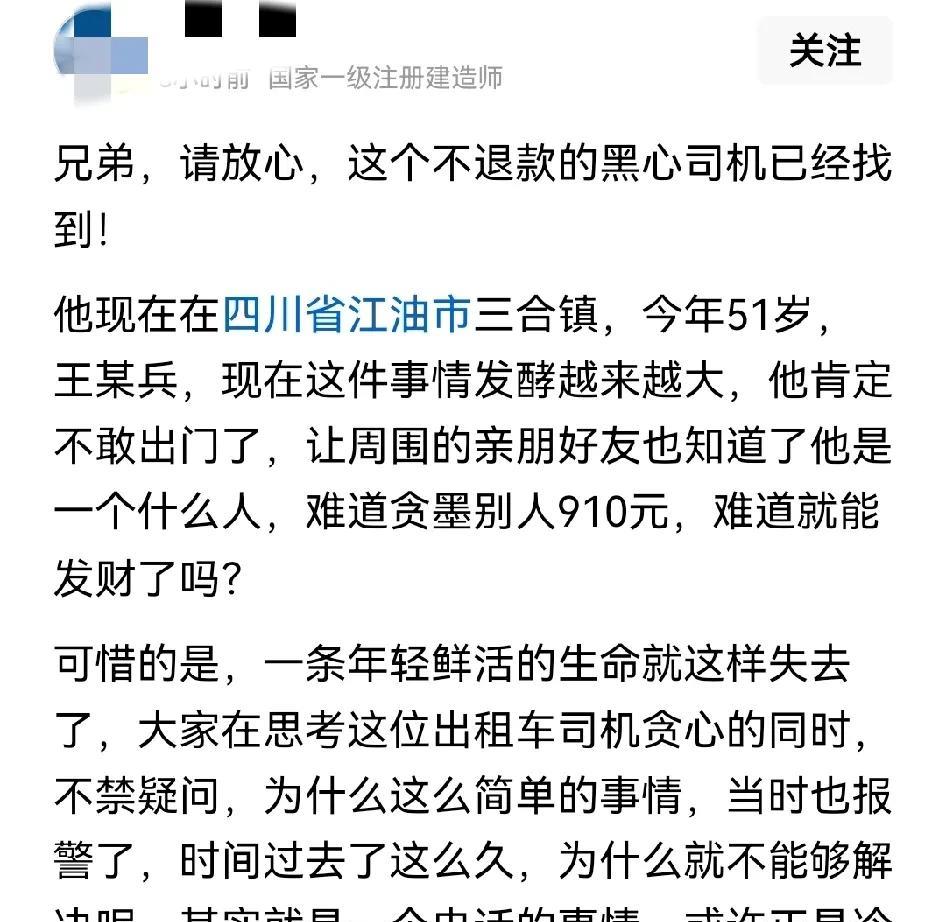 这虾子把四川人的脸都丢干净了,江油的兄弟伙,给这鬼儿子上眼药,是三合镇的,据说出事后回来老家躲起了。 910元就猪油蒙心的,坏得很,是邻居是亲戚朋友的都躲远点,见利忘义之徒,不小心那天就要背刺你。 这龟儿子的不当得利引发严重后果,公安机关不可能就这样算了吧?抓不抓?