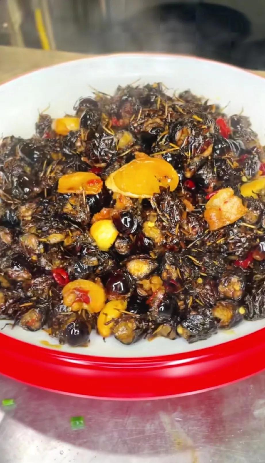 这种老知了也能卖钱吗,有谁收我这边多的很,一棵树上十几只。 我一直以为只有那种地下爬出来的才能卖,没想到这种老的也可以拿来换钱。一方面可以挣点零花钱,另一方面可以减少噪音,主要还是为了挣钱。 我看别的博主炒香辣知了头挺不错的,头上面都是瘦肉,炒出来又香又脆。 有个大爷没事天天捉知了,最多时候一天抓二三十斤,一斤算一百一天十斤,一个月就是30万啊。