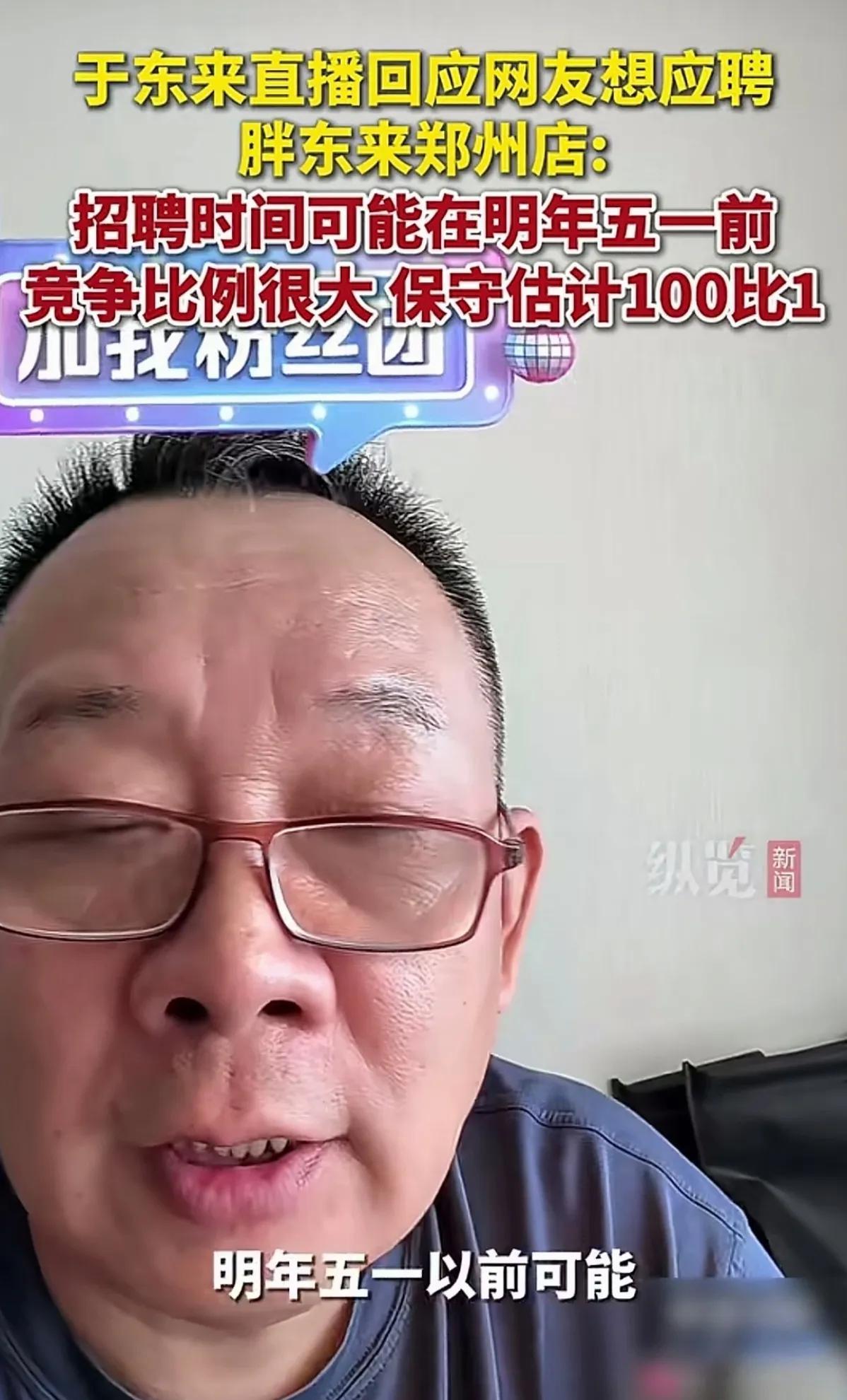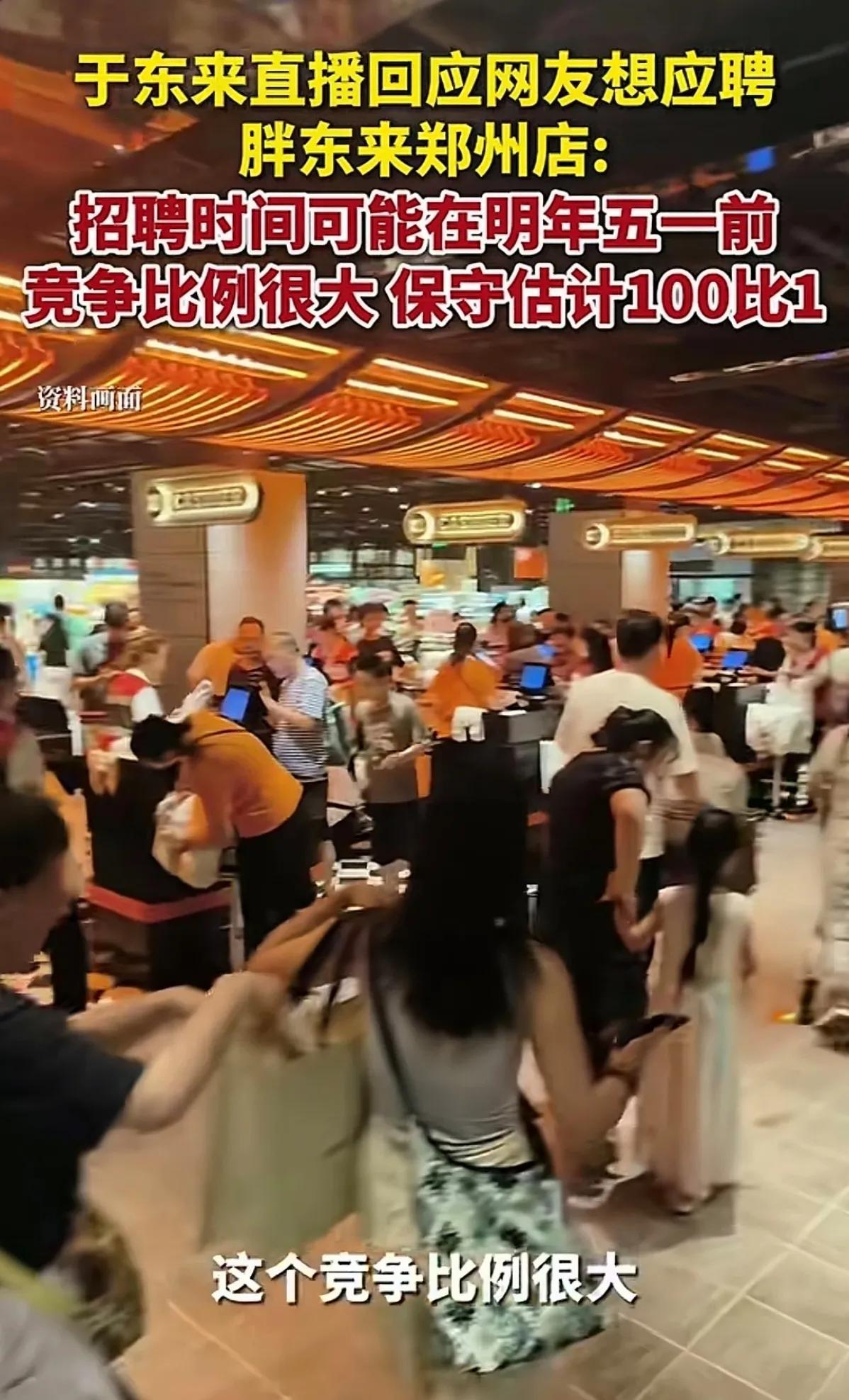 胖东来明年五一招聘竞争激烈,100人可能录取1个。 这么高的竞争比例堪比国考、国