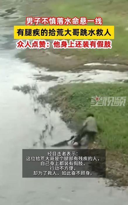 “骨子里的善良!”近日,云南丽江,一男子不慎落水,呛了好几口水命悬一线,路过的残疾大哥发现后,义无反顾的冲进河中救人!目击者表示,大哥腿部残疾装有假肢,是附近的一个流浪汉,可他为了救人却丝毫没有犹豫。网友:心地善良的人不看家境! 夏天一到,水边的人就变得多起来,但大家一定要注意安全,不要擅自下水,尤其是不熟悉的水域,毕竟水下环境复杂,稍有不慎就可能发生意外! 据媒体7月25日的报道,当时有一名男子溺水了,情况非常危急,虽然有目击者拨打了报警电话,但并没有人下水救人。 眼看男子就要被河水淹没,一名灰头土脸的大哥出现了,有人认出了他,那正是附近的拾荒者,平日里靠捡废品为生。 更令人没想到的是,拾荒者还是个残疾人,他的腿上装有假肢,平时走路都不利索的他,此刻却健步如飞的下到水里,揪住落水男子的衣领朝岸上拉。 最终,二人都平安上了岸,落水男子被消防队接走。 网友看后表示,果然善良的人是不分高低贵贱的!有的人虽然穿的光鲜亮丽,可内心却非常的肮脏,而有的人虽然看起来有些邋遢,但打心底却是个善良的人。 大家对于这件事是怎么看? 信息来源:《男子落水命悬一线,有腿疾的拾荒大哥跳水救人,英勇无畏感动众人》星视频