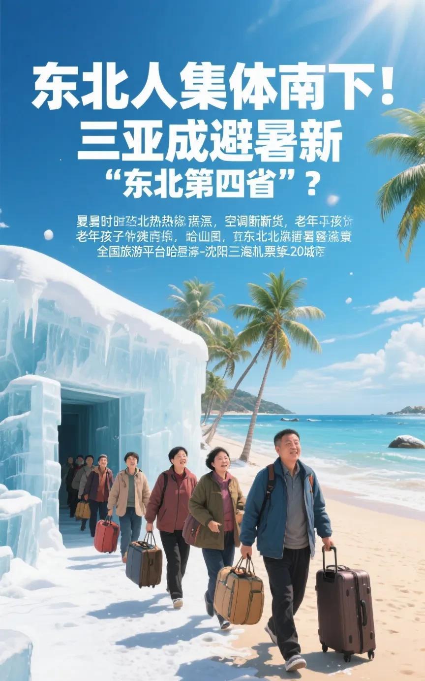 东北人集体南下!三亚成避暑新“东北第四省”? 盛夏酷暑,东北简直热翻了天!素有“冰城”之称的哈尔滨5天连续突破35℃,漠河飙到39.5℃。这几天,东北空调断货、安装要等15天以后,老人孩子纷纷南下,三亚逆袭成了东北避暑圣地。 此时此刻,全国各大旅游平台数据显示:哈尔滨、沈阳跻身三亚订票量前二十城市。据知情人士透露,三亚常住人口76万人,其中,东北人占了1/4。去三亚,沙滩上随处都能听到东北口音,到处都是老乡,“东北第四省”实至名归。 时至今日,当气候变迁重塑人们生活方式,这场“反向迁徙”不仅是避暑选择,更是对未来的警示。东北人南下,不仅仅是避暑那么简单,人才流失,资金外溢,这都是东北人亟待思考和面临的新课题。