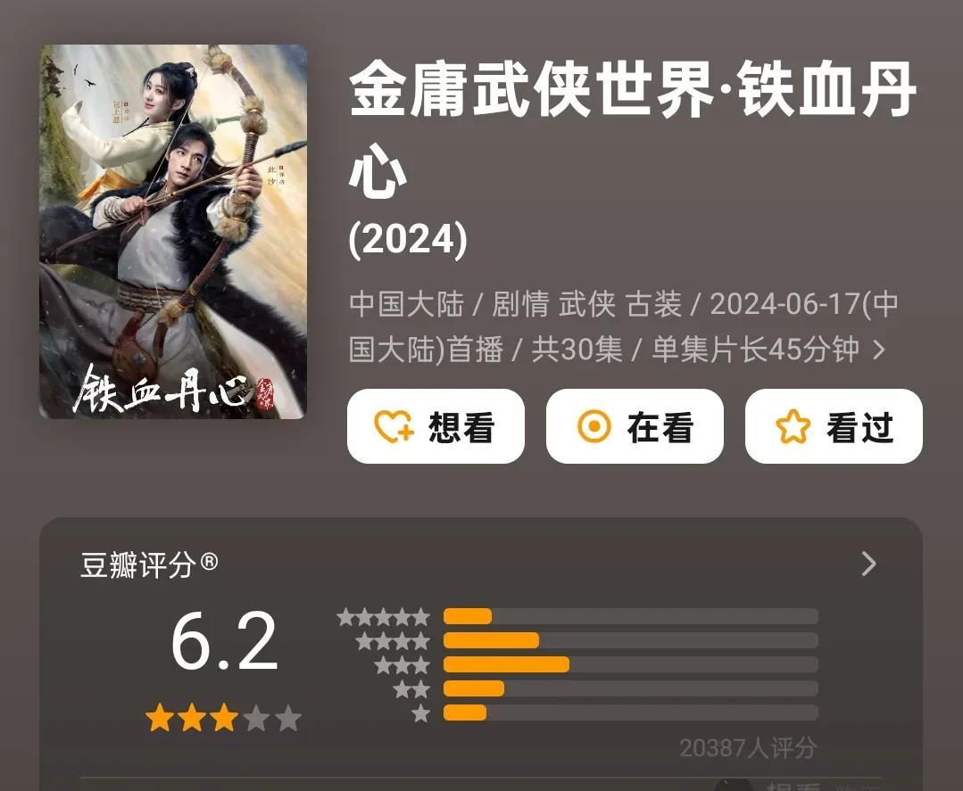 经历了单元剧《铁血丹心》的失败,一年后,《金庸武侠世界》的其他单元剧终于官宣定档,不知道这次能否稍微有些起色? 鹅厂本来召集很多名导想玩把大的,结果第一部就玩脱了,播出后不仅反响平平,差评也是接踵而至,尤其是针对故事内容和武术设计的吐槽,不仅没有进步,反而处处透露着廉价。 如今,孟子义陈都灵等早就独当一面,后面的单元剧也是时候抬出来了。这回鹅厂不敢玩饥饿营销,直接把《华九阴真经》《东邪西毒》《南帝北丐》《五绝争锋》按照顺序全部播出。 武侠剧到底还有没有市场?我感觉是有的,但观众不会因为某个演员买账,大家还是只会冲着故事去。金庸武侠早就烂熟于心,所以,对于这四个单元剧的故事,别抱太大期望,就只能勉强期待一下动作设计。 这年头,所谓的全明星阵容的作品,大多数不敢恭维,预测最后播完口碑基本维持在6分,这已经是观众最大的宽容。
