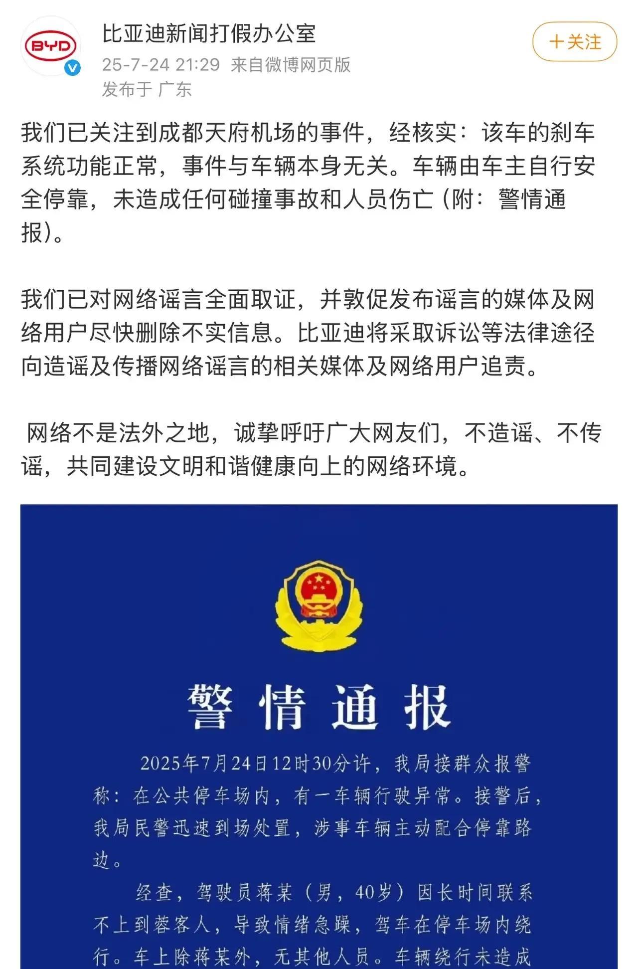 比亚迪失控纯属造谣,造谣传谣者快收手吧! 这两天,网上造谣比亚迪失控已经到了肆无