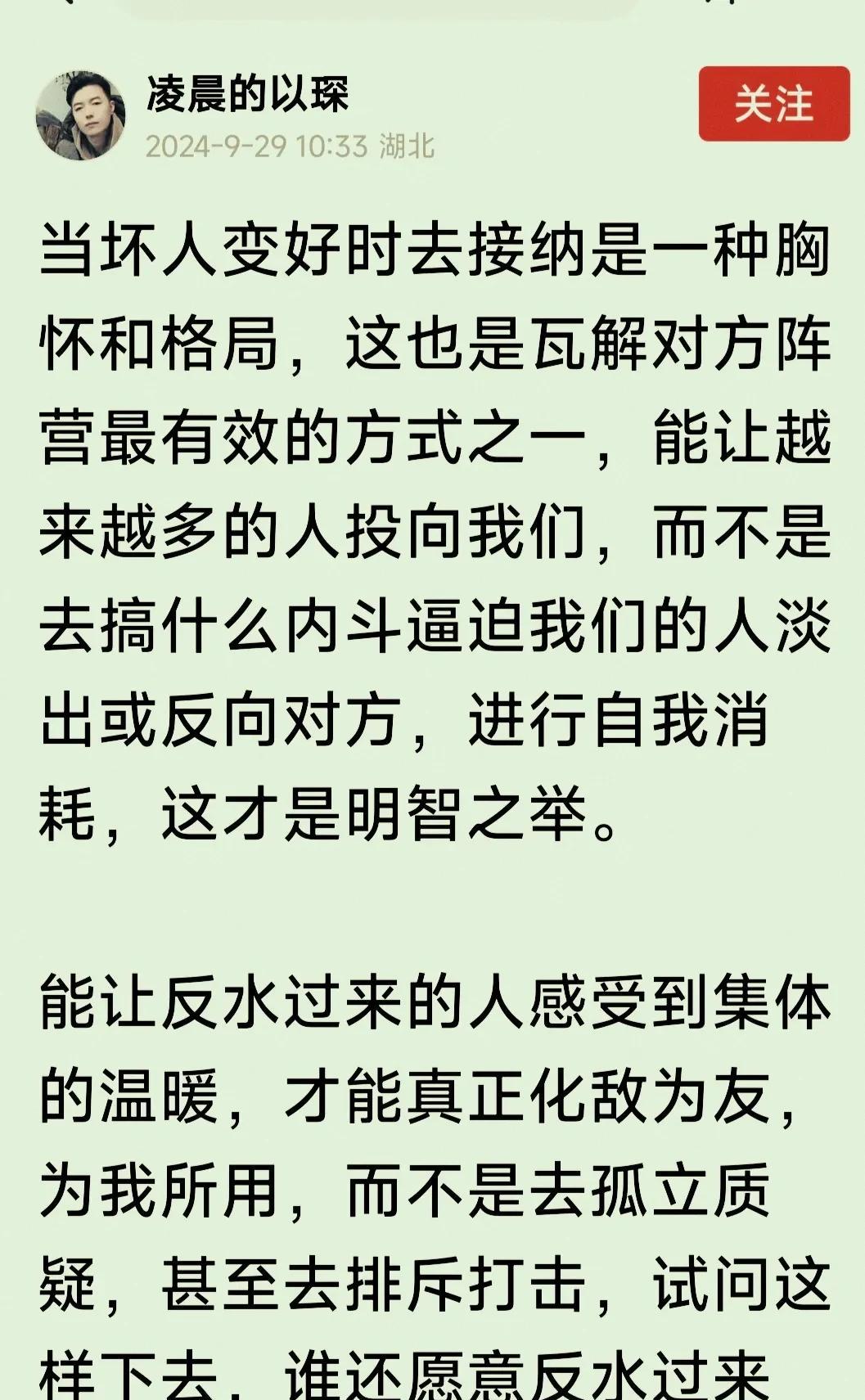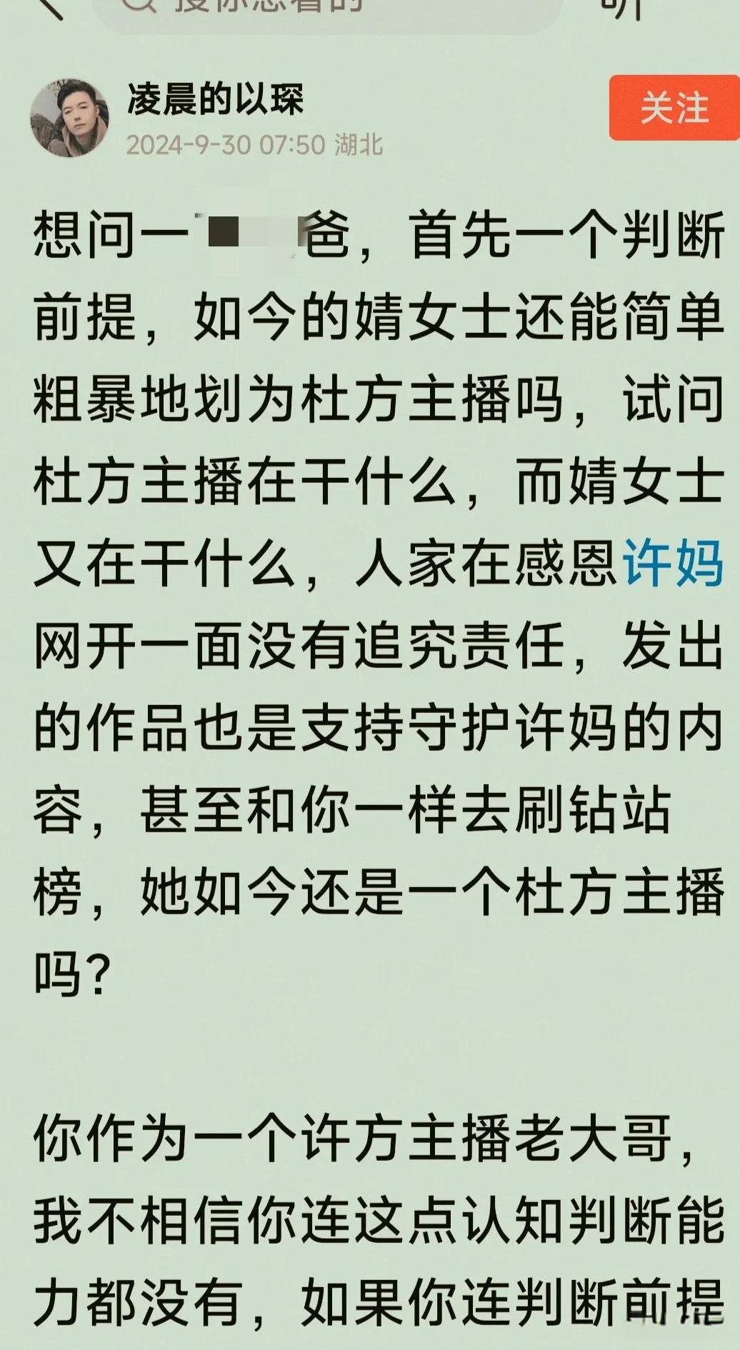 告了,真的告了,大娘没有做到的是,盟主竟然做到了,仗义执言的以琛接到盟主的传票,这比敌人还狠。 昨天我说了“只要他们不认识到自己错误,不道歉,二八阵营就会继续乱下去,永远不会安宁,即使二八真相出来,他们会凶狠的朝恒苏扑上去撕咬,正如当初许妈被杜粉撕咬一样”。没想到这么快就来了。 为啥要告他啊,这事还得从云南听证会说起,会后,副盟主揪恒苏小辫子,因为恒苏说“姐姐(许粉)交给的任务完成了”,他说“大姐(指柴桑老师)什么时候交给你的任务” ,拉开了网暴恒苏的序幕,大红袍事件将网暴行为推向了高潮,在这个时候以琛仗义的站出来了,揭露八大金刚,被他们被称为“空降兵”。 先搞清楚什么是揭露,以琛是这样说的:首先对于撕的概念,无凭无据歪曲事实颠倒黑白泼脏水扣帽子恶意整人才叫做撕,而依据事实有理有据地进行回击和揭穿叫揭露并不叫撕。 为什么说他是仗义执言呢?通过他的文章可以体现出仗义的一面,在9月18日,听说有人叫嚣着要扒浔阳夜话老师的皮,他站出来了谴责了这个人。 后来发生了大红袍事件,由于八大金刚的误导,很多人都谴责恒苏 于是这个时候正式揭露、谴责八大金刚,八大金刚看到后,才说了哪来的空降兵,其实对于这个空降兵,我也辟谣过,很早都是支持许姚的,因为我看到2023年的文章。 他们的粉丝甚至把他说成杜粉,这就是很多撕人帮粉丝的特点,只要批评八大金刚,他们就说你是杜粉,是黑子,他们反而扣在支持恒苏的支持者身上。 对于江苏婧总,他是这样说的:“当坏人变好时去接纳是一种胸怀和格局,这也是瓦解对方阵营最有效的方式之一。希望更多的小星星能擦亮眼睛,不轻易跟随别人的节奏参与互撕,只有很多的小星星团结我们才能保持人心不散,不管是排斥反水过来的人还是搞内斗互撕都是对方才乐意看到的事,并不是我们所希望看到的结果……”。这算不算呼吁团结? 其实以琛的文章都是有理有据,就是在直播的时候长期批他们,但被旭认为是倾向针对他的。 面对八大金刚,他率先指责了副盟主,说婧女士感恩许妈网开一面没有追究责任,发出的作品也是支持守护许妈的内容,甚至和你一样去刷钻站榜,她如今还是一个杜方主播吗?你作为一个许方主播老大哥,我不相信你连这点认知判断能力都没有,如果你连判断前提都搞错了,你觉得你后面的一系列结论还能成立吗? 他还这样说,他该分析的也分析了,该劝的也劝了,我对所有的主播对事不对人,还是希望各方能克制情绪保持团结,打开心胸和格局。 从这段话,看出来他能理性地分析问题,他的苦口婆心地相劝,尽显真诚与善意,希望各方能放下成见。他对事不对人的处事原则,彰显出公正无私。呼吁各方克制情绪、保持团结,打开心胸和格局,这就是他的大气和担当。 正因为他们撕的厉害,后来他揭露了盟主、不正,古美、旭以及其他主播。尤其是不正先生说是成功阻挠了恒苏引进杜粉对小星星们的收割。 大家看看不正的这段话,就明白了,是怕人家来卖货收割流量,这不是自私自利吗?如果大家看到那个聊天记录,更气人,他们都认识婧总,撕人帮们也找婧总合作带货,只不过婧总选择了恒苏,而恒苏和她合作的目的,就是揭露大娘。 正因为恒苏和婧总合作,这又是一个巨大的流量,触及了撕人帮的利益,所以他们就利用婧总曾是杜粉的身份,混淆视听,拉仇恨来攻击恒苏。至今他们还认为婧总是杜粉,正如那个大姐说的好,当一天杜粉,就永远是杜粉吗? 对盟主的揭露,我就不说了,说说大娘,对于许方主播,可谓是恨极了,她早都想告许方主播,而恒苏正是大娘的对象。 现在盟主亲自出马,只有干倒他了,他这样做,不但帮助大娘,也算是帮助其他兄弟报仇了,背后高兴的就是大娘和杜粉以及田家军们,帮她们出一口恶气。 以琛并不孤单的,当看到告他的消息后,很多许粉为他愤愤不平,谴责盟主,安慰他,做好应对措施,为他加油。 #二八乱象# #撕人帮##人性有多丑陋?#