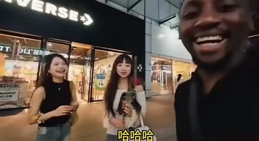 他说我们可以交朋友吗?女孩马上就说可以,最后加了微信号,留下了电话号码,这位非洲留学生叫布加,在中国生活三年了,他的普通话已说得很好。