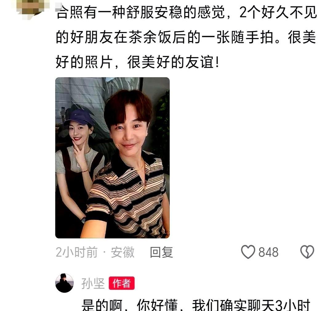 7月21日晚,演员孙坚在社交平台晒出与唐嫣的聚餐照。 照片中两人坐在餐厅沙发区,