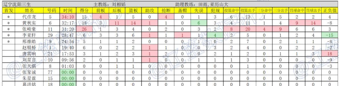 2025U21青少年篮球联赛,辽宁队81:85不敌上海队,辽宁队张峻豪26分4篮板2抢断,黄秋实18分14篮板,代彦龙15分5篮板4抢断,李亚轩6分6篮板,邢维浩5分2篮板,赵银桥6分2篮板1助攻,唐雷响3分3篮板,刘星言2分1篮板。 本场比赛上半场辽宁队发挥极差,半场30:51落后21分,辽宁队面对上海队的防守还是失误较多,组织不起有效的配合,都是单打独斗,下半场辽宁队才打出自己的特点,逐渐将分差缩小,可惜最终时间不够,最终以4分之差输掉了比赛。