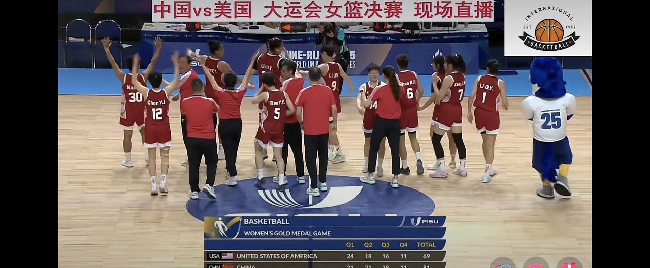 赢了!冠军是中国女篮! 在刚刚结束的世界大运会女篮决赛中,中国女篮最终以81比69战胜了美国女篮,拿下了在德国举行的世界大运会女篮冠军! 纵观全场比赛,中国女篮上半场比赛打成42平,在第三节比赛中,依靠出色的表现,单节赢下了12分,第四节最多的时候领先到17分,最终还是赢了12分。 中国女篮加油!说句大实话,上届大运会,中国女篮夺得冠军还是依靠韩旭,如今韩旭不在球队,中国女篮依然夺得冠军!