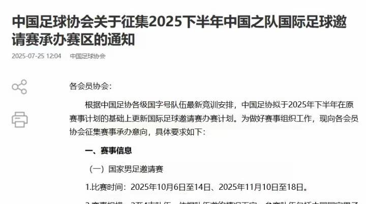 国足将在10月份和11月份举办国际邀请赛,正在征集承办赛区! 自从国足失去晋级世