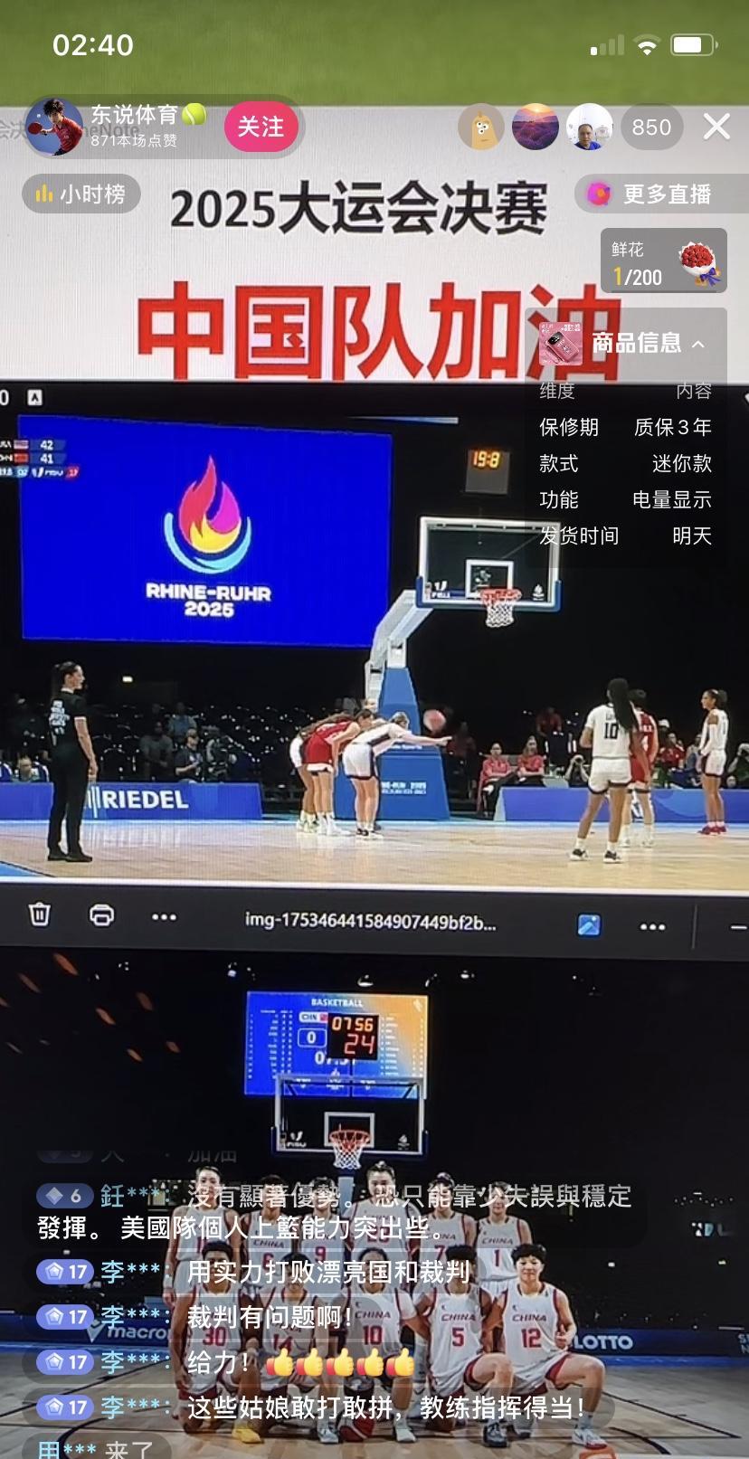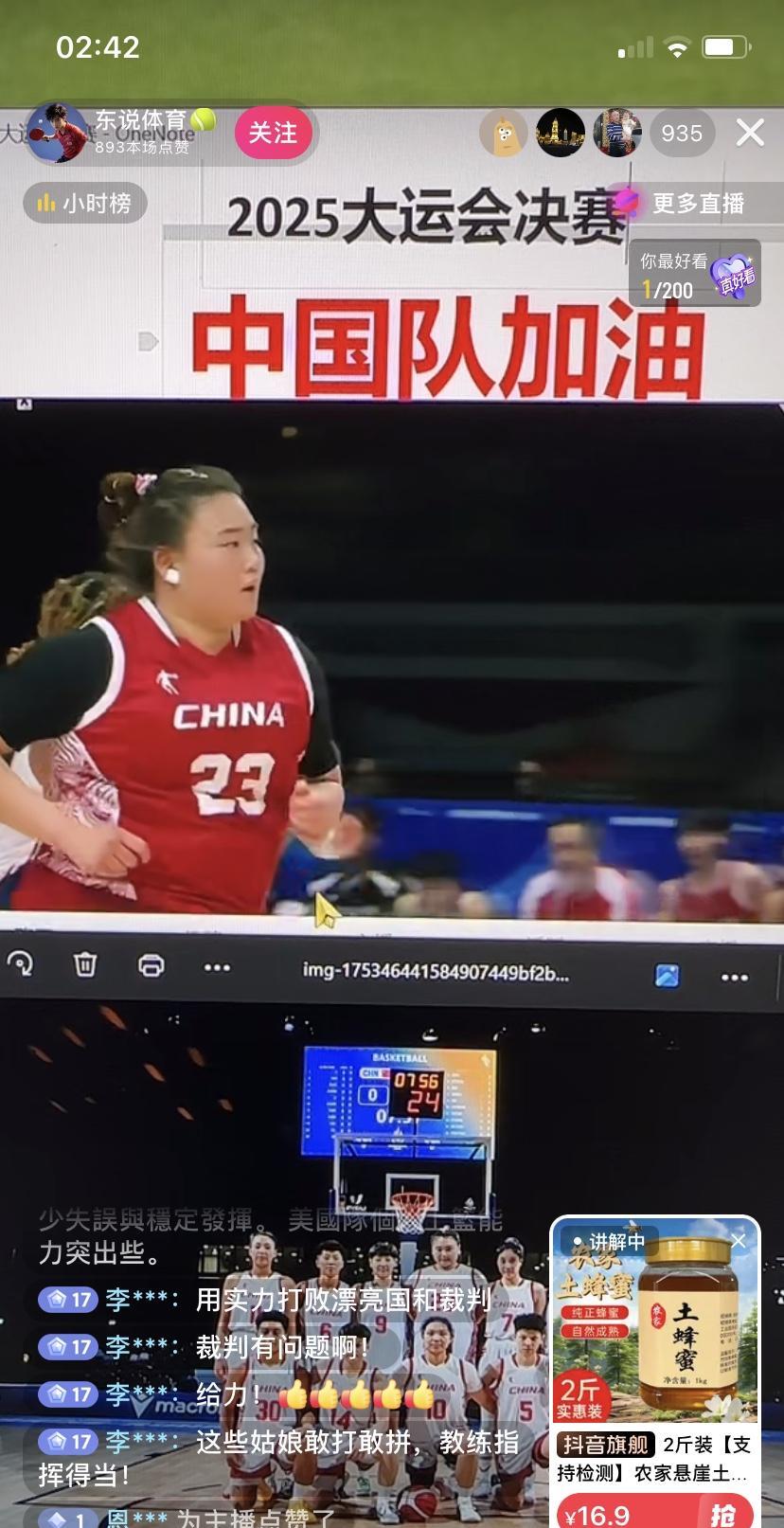 漂亮呀!中国女篮劳道! 在刚刚结束的中国女篮和美国女篮争夺世界大学生运动会女子篮球决赛的上半场比赛,中国女篮以42比42打平。 纵观上半场比赛,中国女篮刘禹彤表现十分出色,其她球员也表现上佳。反观美国女篮速度快,冲击力强,而且三分球也不错。 中国女篮加油!中国女篮必胜!希望在下半场比赛中,中国女篮发挥上佳,争取拿下美国女篮,夺得大运会女子篮球冠军!