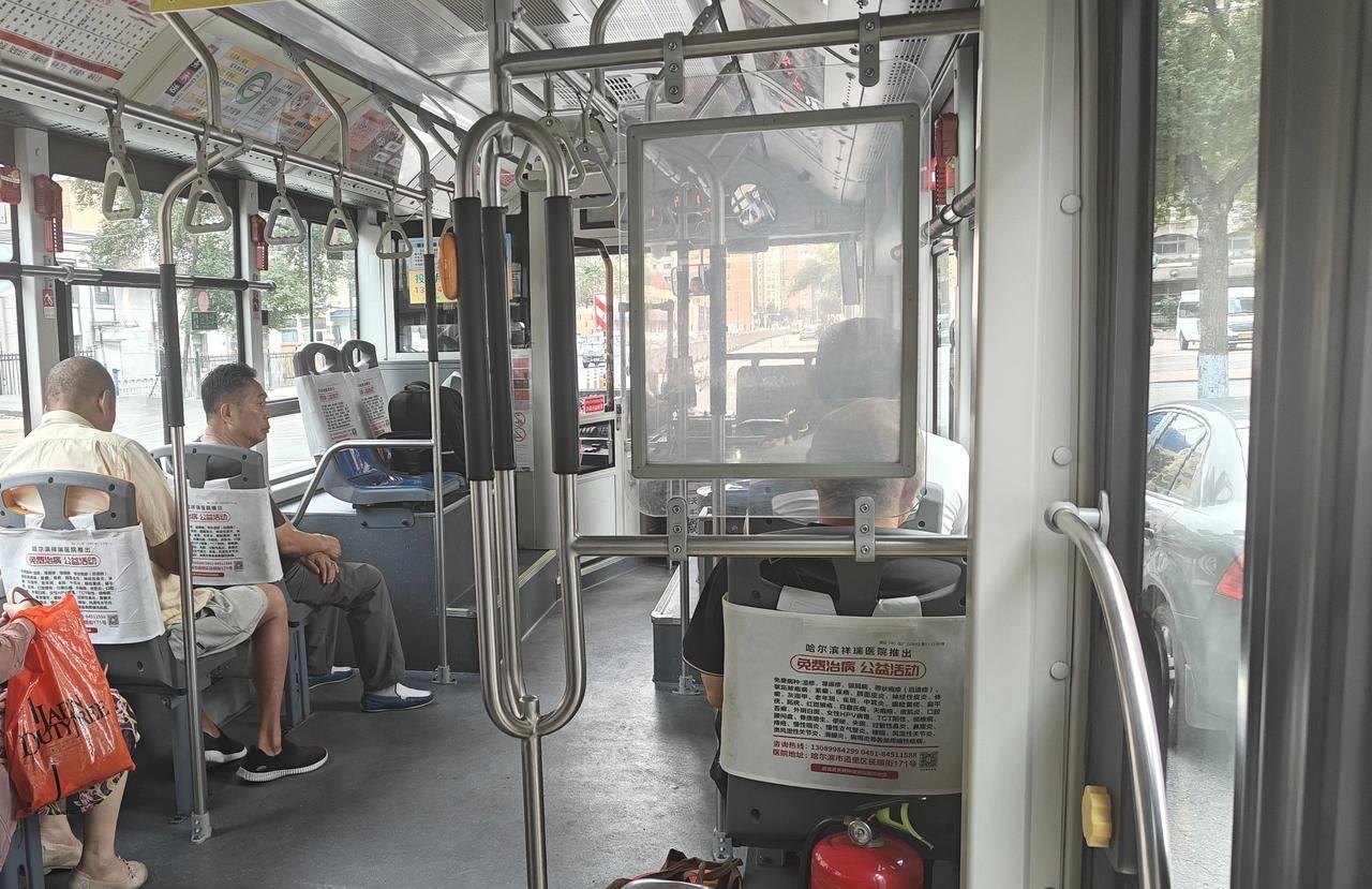 昨天下午从道外巴洛克回来,坐三线公交车人不是很多,座位也没有,坐着的也差不多都是