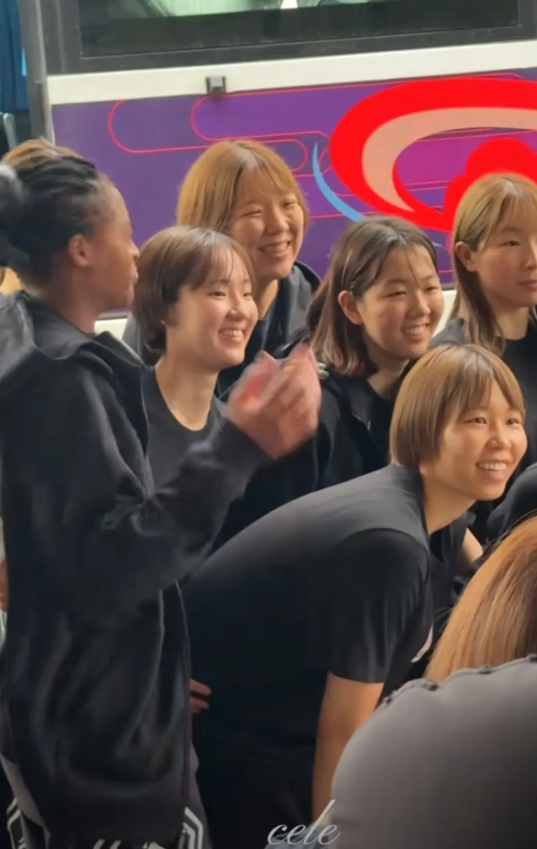 日本女篮结束深圳亚洲杯征程后,在离开深圳宝安机场前,在大巴车下,做了两件事。一是向前来送行的中国粉丝,挥手致意,送去飞吻;二是在大巴车前合影留念。