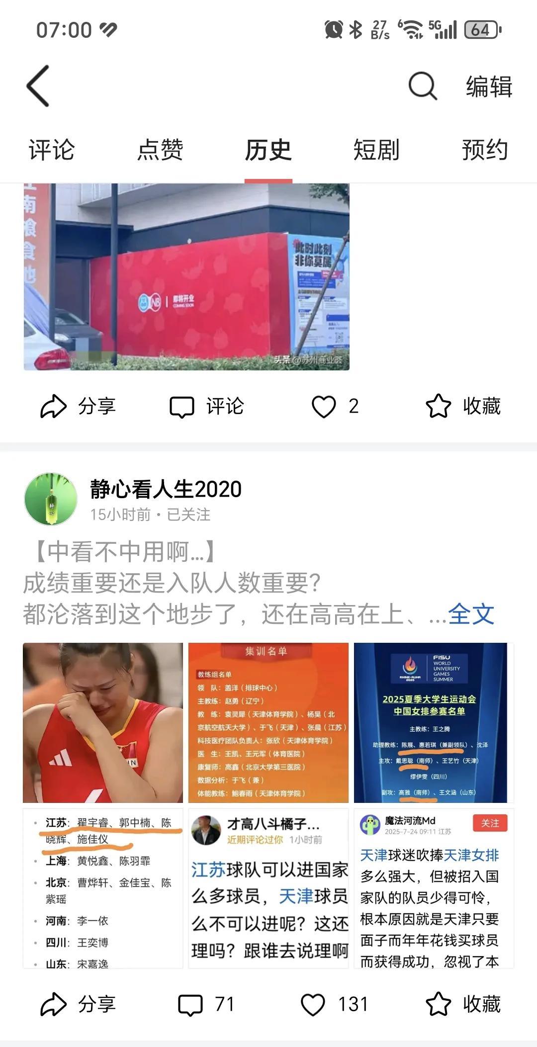 哪来的的幸灾乐祸?! 中国女排世界女排联赛以2:3惜败给波兰队后,某些家伙特别是某“地域黑”的球迷反而兴高采烈,不悲反喜。不禁要问:哪来的的幸灾乐祸?! 下面截图的这篇文章,无非就是说各级国家队用了多少江苏藉选手,取得的成绩是如何如何的不理想,言外之意就是没用某籍选手吧。有许多某“地域黑”的家伙在下面纷纷跟贴,好不热闹! 我们姑且不说江苏籍选手水平有多高,单说以赵勇主教练为首的各级国家队教练们的选人用人,假设明知用江苏女排选手不中用、不适合,仅仅因为所谓“饭圈文化”的原因,就拿中国女排成绩及各位教练个人执教声誉开玩笑,恐怕没有人会傻到这种程度吧?!假如多用几个天津女排的选手,就能取得好成绩,就凭天津女排在中国女排历史上的地位及李珊副局长的“长袖善舞”,赵勇主教练也没有任何理由拒绝吧,何乐而不为?! 举个眼前的例子,世界大学生运动会,天津女排的王艺竹可是担当主攻,发挥的怎么样,大家有目共睹当,眼睛是雪亮的!球队成绩不佳,其“地域黑”们反而拿当领队的惠若琪来说事,是不是故意作恶作剧呢?! 当与刘美君、陈博雅等天津女排选手同时代的吴梦洁、庄宇珊已经成长为国家队主力担当时,刘、陈等人早已迷失于众人之中了!单就比赛气质而言,刘、陈、王等天津女排选手就无法与吴、庄相提并论了,实力就更不用说了! 这届中国女排,最弱的就是副攻位置,而作为老将又是当家花旦的天津女排王媛媛的发挥甚至于还不如王奥芊等小孩,此话又怎讲?! 天津女排除了李盈莹之外,青黄不接是不争的事实,靠朱婷、袁心玥、瓦尔加斯等外援不可持续! 话说回来,本届中国女排虽然年轻,但冲劲十足,几场大逆转很能说明问题。 所用队员不光是江苏球员,还有北京、上海、福建等竞技排球较强地区运动员,当然也包括李盈莹、王媛媛等天津球员,只不过不包括青黄不接的天津年轻球员罢了! 这支年轻的中国女排,具备冲击世界一流球队的实力,这一点不容置疑。带“有色眼镜”的人假装看不见而已。就是现在的这个成绩也不能说差,对于刚刚组建不久的年轻球队,已经很不简单很不错的了! 有些人只要看不到有天津球员,就看不得中国女排的任何进步与成长,怎一个“唱衰”了得,这叫什么心态?!阴暗的很!