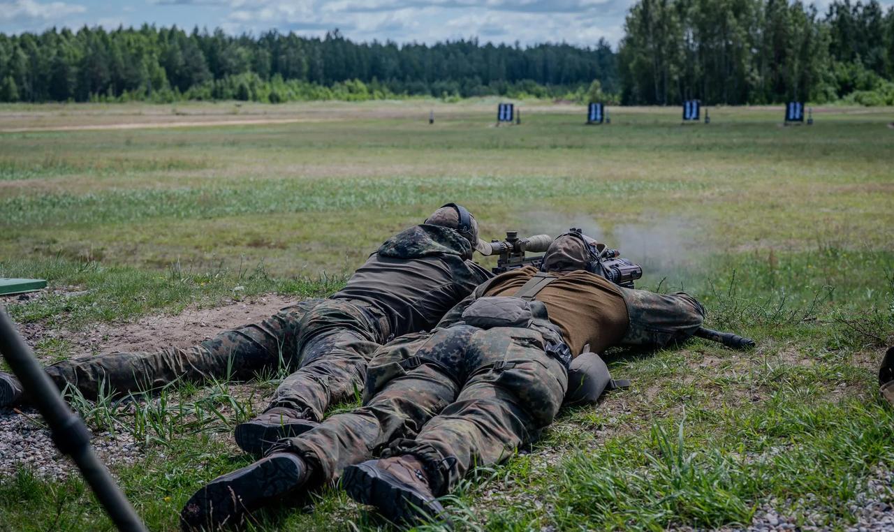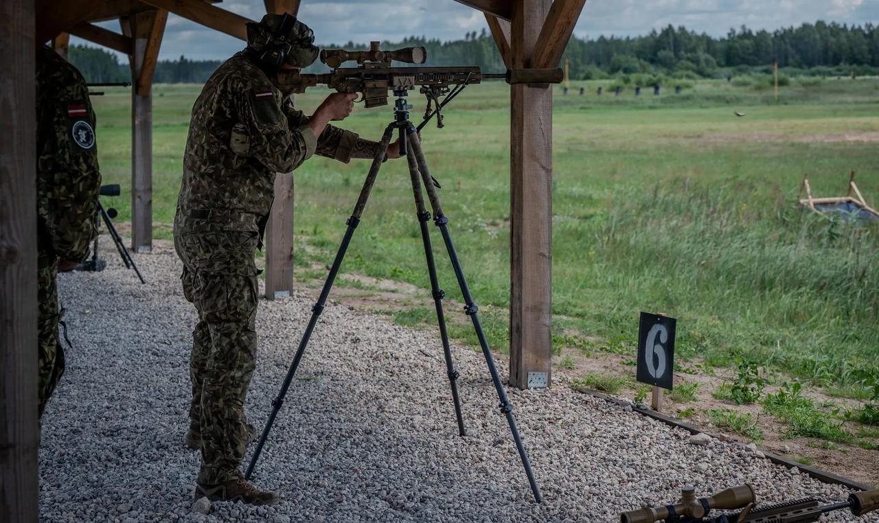 拉脱维亚、德国和荷兰狙击手,在立陶宛的训练场进行射击训练。 HK417和G22A