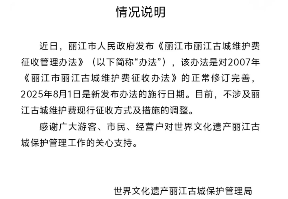 丽江古城开了个头,不知道接下来大理古城、香格里拉等等会不会跟上。