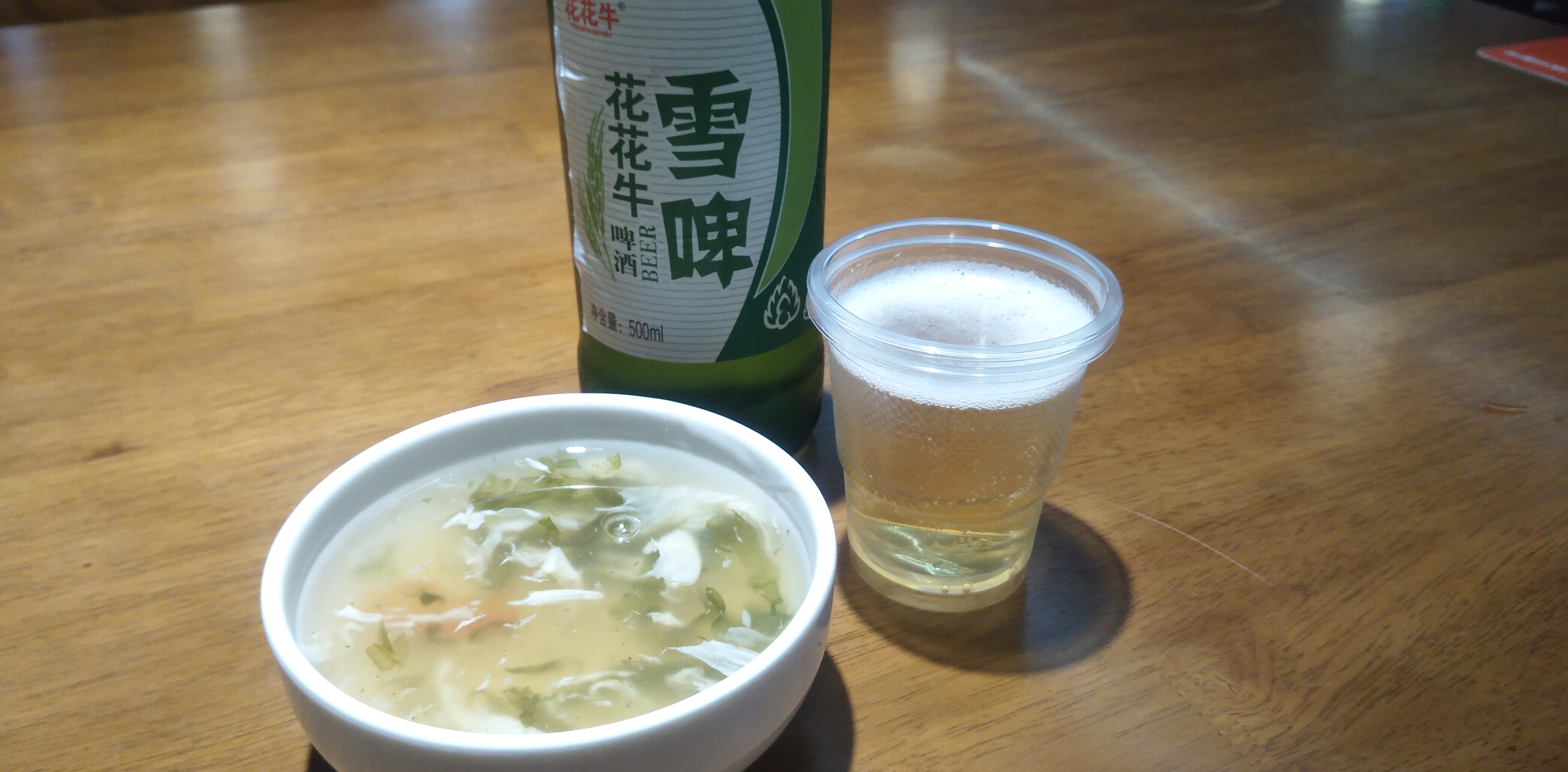 郑州丰乐路一家焖面馆,退出5块9毛钱就能吃到一大份大肉焖面,而且还赠送一瓶啤酒,还有鸡蛋汤茶水免费供应,真是实惠。