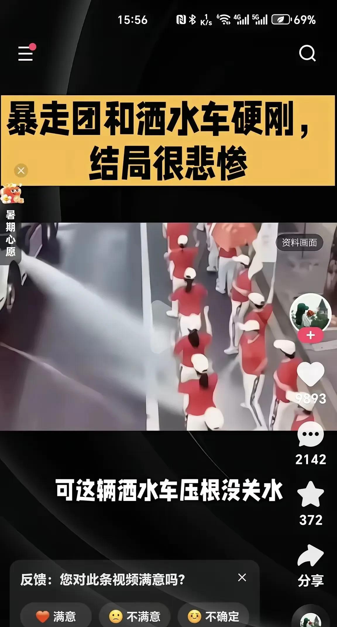 公路上洒水车遇到暴走团,对无视规则的人要不要留面面子? 看网友评论,“快车道是跑