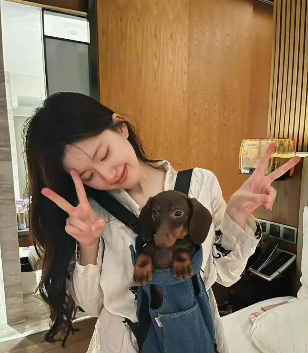 原来有这么多女明星养了狗狗啊[送心] 1.杨紫和自己的狗piupiu 2.孟子义的狗狗是一只博美,叫巧克力 3.白鹿的叫黏黏。 4.李一桐的狗叫肉肉。 5.赵露思的狗是一只腊肠犬,叫点点。 6.宋茜和好友张佳宁约会也要带上自己的狗狗,太有爱了吧[送心][送心]