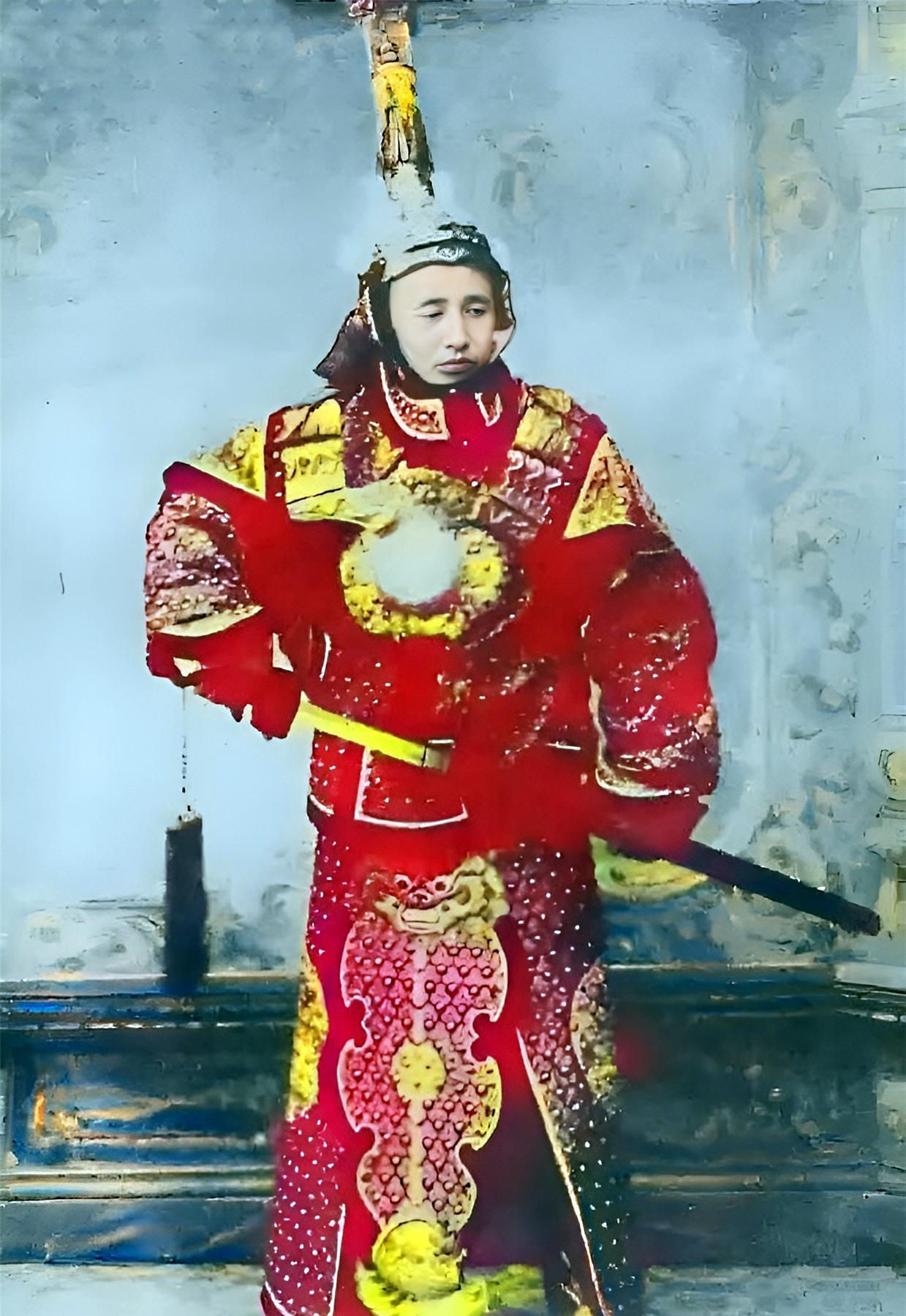 这位身穿甲胄,手持宝剑的将军正是明朝大将袁崇焕的七世孙袁寿山。他的父亲袁富明阿也曾效力疆场,并一步步升为一品武将江宁将军、吉林将军。父亲死后,身为长子的寿山袭骑都尉世职,并以三品衔补用郎中。 袁寿山与弟弟袁永山皆有祖上血战疆场的武将遗风。甲午战争中,他与弟弟和日军数次血战。弟弟战死后,寿山依然率部与日军大战,并保全队伍撤退。 之后,寿山被派往东北保卫边疆。这次,他的对手是数次蚕食清朝疆土的沙俄。当寿山担任黑龙江将军时,面对沙俄的步步紧逼,他丝毫不让步。当俄军侵占齐齐哈尔后,曾对其诱降,但寿山誓死不从,最终自杀殉国,终年40岁。袁崇焕后代的武将基因是刻在骨子里的。寿山与弟弟都不愧为袁崇焕的七世孙。