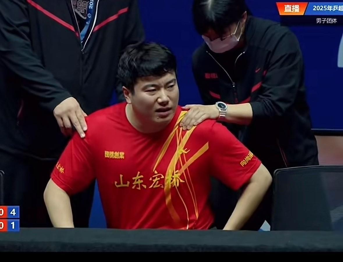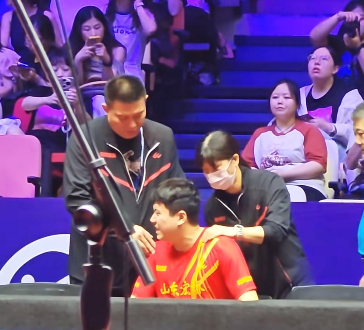 梁靖崑刚刚和袁励岑的单打比赛时肌肉拉伤,被迫放弃比赛,上一场双打的时候就感觉甜甜