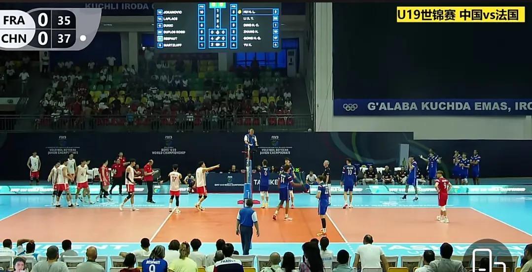 世界男排联赛速报: 快来看中国男排…… 世界男排U19联赛, 中国男排U19 对阵法国男排,第一局开局不错,大比分领先,只是把握的不好,虽然法国男排紧着发球失误送分,中国男排打得还是挺紧张,比分一直焦灼,直到局末中国男排才有效撑起,大比分一比零,中国男排领先,继续看比赛,为中国男排加油! #中国男排# #U19比赛#