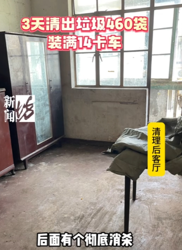 “太离谱了!”近日,上海,一独居老人离世,却在家中留下了成山的垃圾!老人亲属对清理毫无头绪,好在社区管理和物业等帮忙,20多人共同清理,3天清出垃圾460袋,装满14辆卡车,最终清理成功!