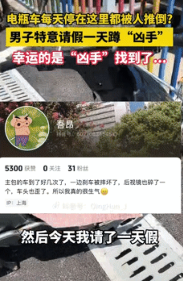 “这是真解释不清了!”上海一小伙每天把电动车放在同个位置,谁料,每天都被“人”推倒,气的小伙请假一天,躲在隐蔽的角落蹲守,结果电动车在他眼皮子地下,倒在了地上,他发现了“真凶”,但对“真凶”毫无办法,网友:还好是晴天请假,要是阴天得再请一天! “如果不是拍下来谁敢相信居然是沥青热化了,真是什么事情都能让我碰到!”小伙无奈的说道,这句话道出了他内心难以言说的憋屈与荒诞。 事情的起因要从小伙每天停电动车说起,小伙在上海工作,每天上下班都骑着电动车,为了方便,他习惯性地把电动车停在一个固定的位置,起初一切都很正常,可没过多久,诡异的事情发生了,他的电动车每天都会被推倒。 第一天他以为是小区里调皮的小孩,扶起来拍了拍灰,第二天车把摔歪了,他忍不住骂了句“缺德”,心里开始有了不爽,到了第三天,连车头都歪了,他盯着倒在地上的电动车,眼神里满是愤怒:“这是冲我来的!”周围停了二十多辆电动车,就他的天天遭罪,换谁都会上火。 小伙决定不能再忍了,他请了一天假打算来个“守株待兔”,逮住那个“幕后黑手”,他早早地来到电动车停放的位置,找了个隐蔽的角落,拿着个塑料凳蹲了下来,眼睛紧紧地盯着自己的电动车,生怕错过任何一丝风吹草动。 时间一分一秒地过去,小伙的耐心都快被磨光了,就在他以为今天又不会有事的时候,突然听到“砰”的一声,他猛地抬起头,只见自己的电动车又倒了! 他急忙从角落里跳出来环顾四周,周围空无一人,这让他更加愤怒了,他仔细观察着周围的环境,试图找出一些线索,就在这时他发现了一个奇怪的现象,地面上的沥青似乎有些不对劲,他走近一看,天太热,这沥青地晒久了竟然变软了。 他电动车的一个档脚压下去,直接就陷进了一个坑里,然后电动车就顺势倒了,原来,这个“凶手”不是人,而是“沥青路”,也可以说是“太阳”! 小伙看着那辆歪着的电动车又看看自己蹲了一天的塑料凳突然笑出了声,笑完又觉得有点不好意思,合着自己这一天,跟个傻子似的,跟太阳较上劲了,请假蹲点抓空气,他原本以为是有个人在故意针对他,满脑子都是愤怒和报复的念头,却没想到真相竟然如此离谱。 这件事在网络上引起了广泛关注,网友们纷纷发表自己的看法,一位网友留言道:“这哥们把自己活成了笑话,愣是跟太阳较上劲了,请假蹲点抓空气,估计现在想抽自己两巴掌。” 另一位网友则表示:“老话说疑心生暗鬼,真是一点不假,他先认定了有人使坏,眼里就只剩车倒了,看不见太阳多毒,沥青多软,闹了场自己抓自己的戏码。” 对于小伙来说,虽然这次经历让他有些狼狈,但也让他明白了一个道理,不要轻易怀疑别人,有时候问题可能出在自己意想不到的地方,而我们也从这个故事中得到了启示,要学会以平和的心态面对生活中的各种挑战,不被表面的现象所迷惑,这样才能更好地解决问题。 对此你怎么看?欢迎大家在评论区留言讨论。