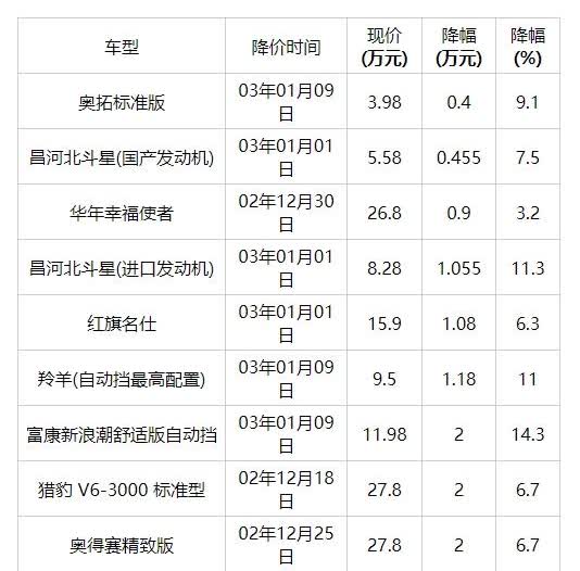来看看22年前,也就是2003年的汽车市场。奥拓3.98万,昌河北斗星(国产发动机)5.58万,红旗名仕15.9万,羚羊自动挡9.5万,富康11.98万,奥德赛27.8万,昌河北斗星(进口发动机)8.28万,不知道北斗星国产发动机和日机配置差距有多大,价格竟然相差将近3万元。