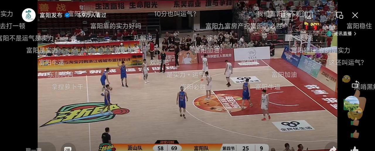 浙BA杭州赛区半决赛萧山VS富阳第四节结束,想不到匪夷所思的一幕出现,萧山被富阳拉开了11分,这个分数让萧山队绝望。 富阳队以无可争议的69比58分,狂胜萧山队。 这次比赛富阳能胜出也在我意料之中,主要在于富阳的实力远在萧山之上,萧山的土地面积注定很难对抗富阳。 孙江豪获得了mvp! 恭喜富阳队,下一场可能对上上城队,胜利也在掌控之中。 这场比赛美中不足是解说,我还以为是萧山队的教练。