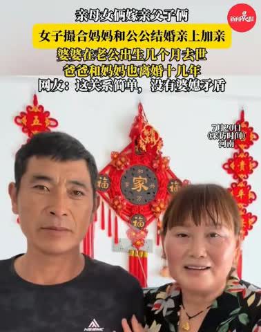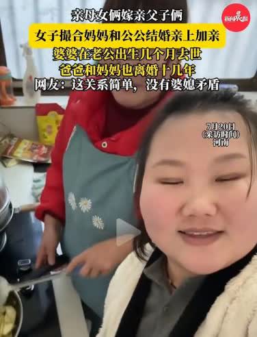 河南,一女子婚后和老公还有单身的公公生活在一起,她发现公公为人处事,生活各方面都不错,便把自己的妈妈介绍给了公公,两人相处一段时间觉得亲家确实不错……于是决定顺从女儿的安排嫁给自己的亲家! 很好很好!单身亲家结了婚,现代家庭挺温馨。双方父母不孤单,和和美美一家人!共同关照儿和女,共同看护小孙孙。多么和谐又幸福,小家处处是阳春! 肥水不流外人田, 母女齐嫁父子间。 婆媳矛盾瞬化解, 和谐日月似蜜甜。 这个儿媳孝顺,也是一个孝顺的闺女,懂得人间烟火气,照顾双亲颇费心,不是笑话是佳话,祝福一家幸福团圆更安康!