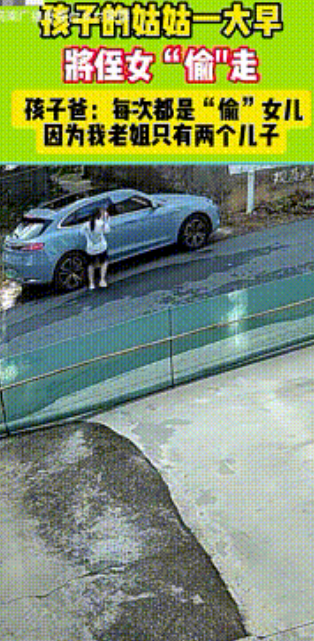 7月23日,小女孩的姑姑一大早,开车前来弟弟家,趁弟弟与家人不注意时,将侄女抱在怀中,一路小跑前往车上。