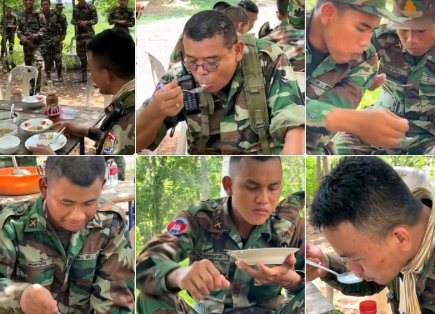 柬埔寨军人打仗看上去很轻松,现场吃饭就像出去野炊,个个都是老爷兵,没一点紧张感,想象平时也吃的很好。