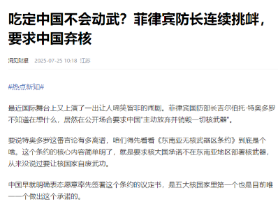 跟着美国闹,只会东盟不待见、民众不支持、经济受重创,中国不想打仗但不怕打仗,真到那一步,吃亏的肯定是菲律宾。