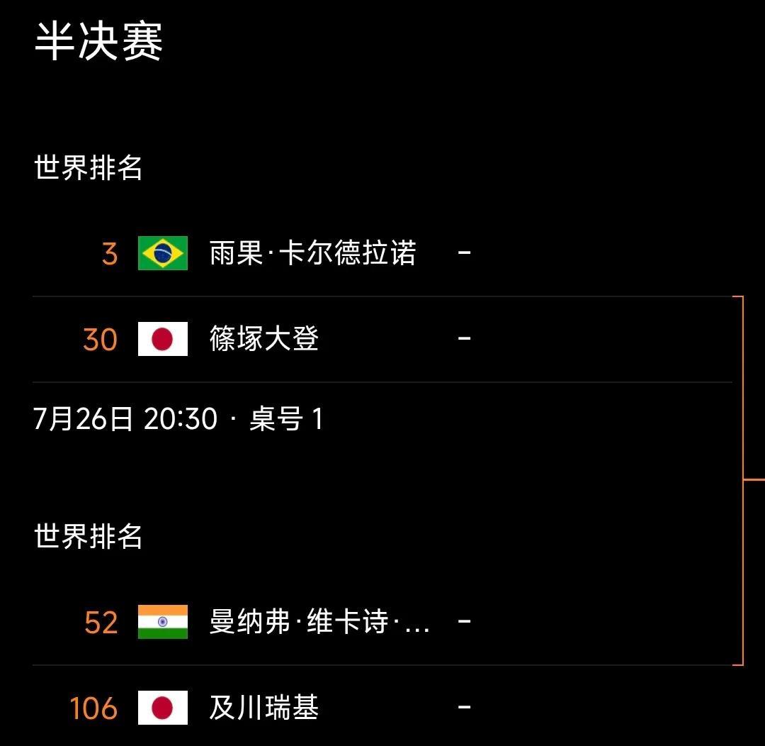 布宜诺斯艾利斯常规挑战赛男单四强:雨果强势晋级,与日本筱塚大登争决赛权! #WTT布宜诺斯艾利斯常规挑战赛# 男单四分之一决赛结束,头号种子雨果战胜廖振珽晋级四强!廖振珽也算有实力的选手,今天与雨果比赛输在了关键分,雨果关键球出手非常果断,战术执行坚决,命中率相当高,连胜三局拿下胜利!另三场比赛,印度塔卡战胜金泰勋,日本及川瑞基战胜贝塔斯迈尔,日本筱塚大登战胜德国沃尔瑟晋级!四强中日本有两位选手! 半决赛对阵: 雨果vs筱塚大登 及川瑞基vs塔卡 从几个人实力来看,雨果夺冠概率较高,但半决赛仍需打得严谨一点!毕竟筱筱塚大登也相当有实力,还是左手球员,相持能力不错,雨果在进攻质量占优!