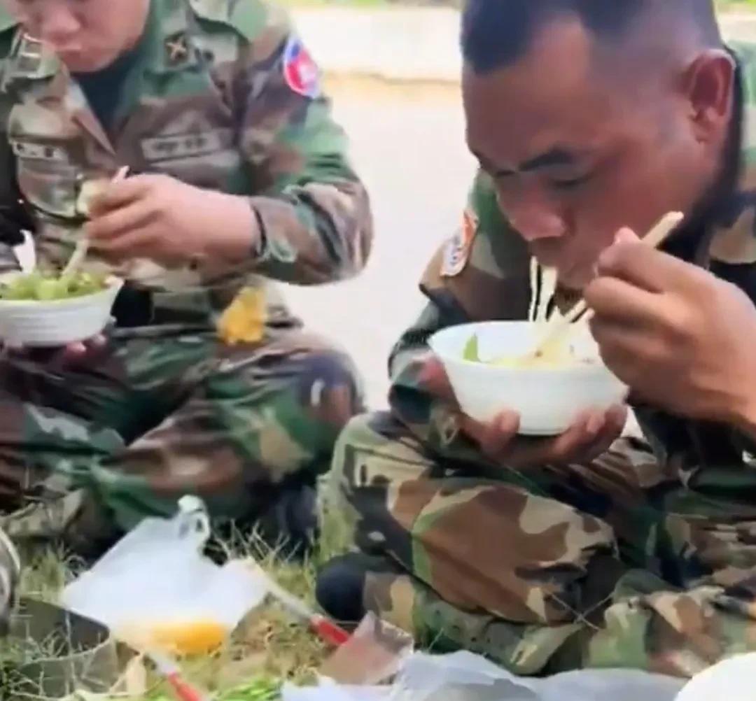 柬埔寨士兵这吃的有点差,还不如缅甸佤邦,同盟军,甚至连像样餐具也没有。 评论中有