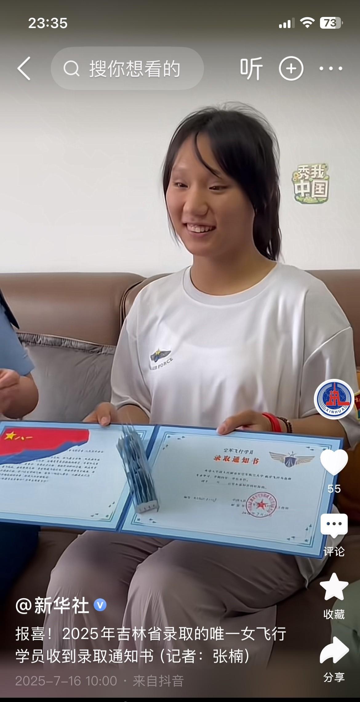 吉林一名18岁的女孩考上飞行员,成为我国第一位女飞行员! 据悉,这位女孩的爸爸就