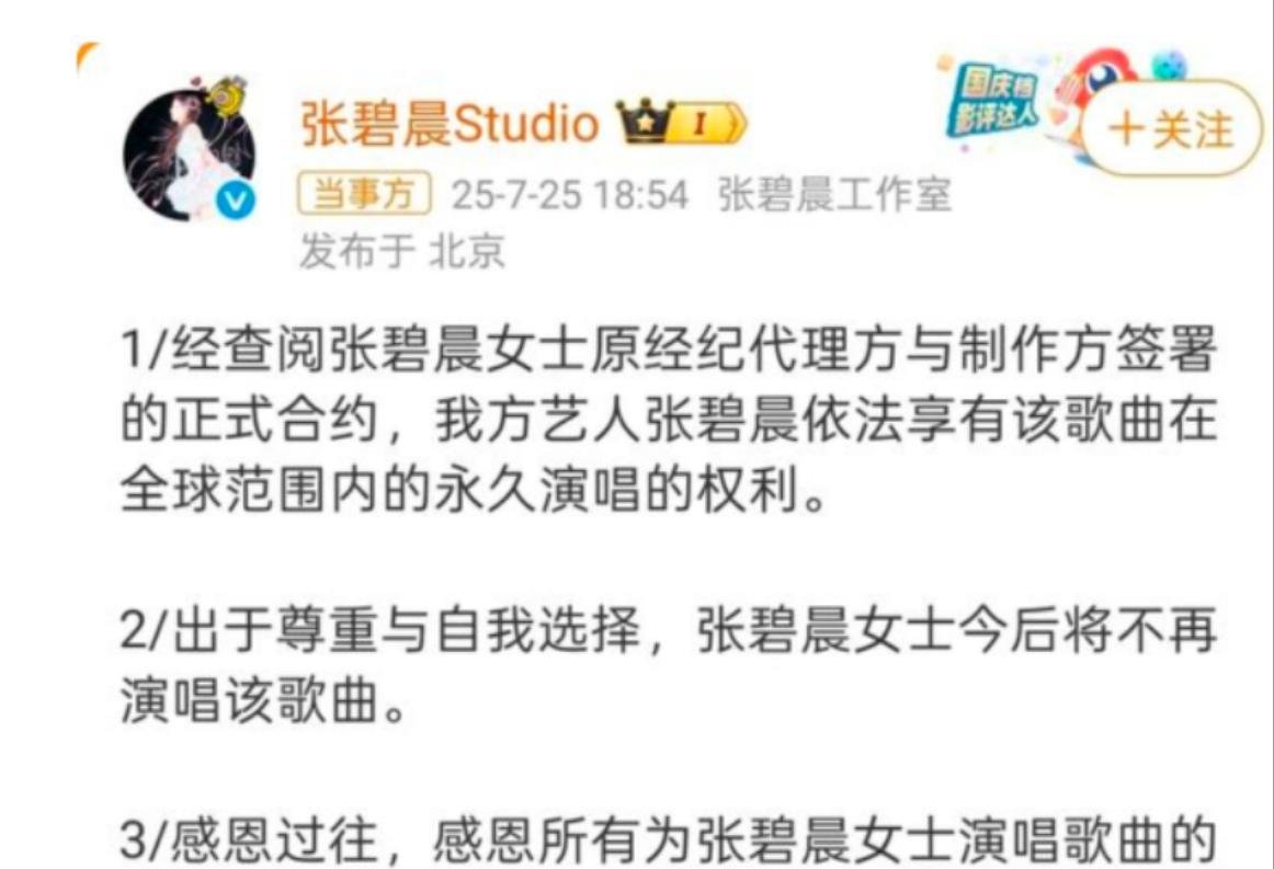 张碧晨,脸都快挂不住了!到底《年轮》的原版权归谁?她也不出来解释,直接官宣说获得