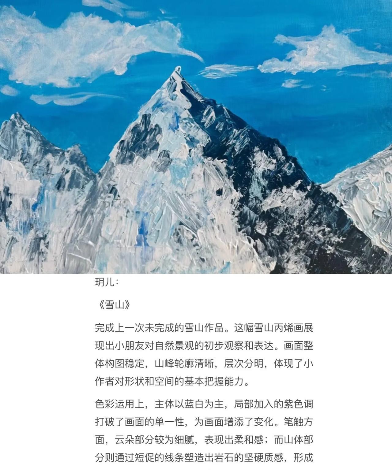 汪小菲女儿和儿子的绘画作品,有一说一,画的还不错!至少让人看起来是舒服的,颜色搭配协调,画面干净清爽,赏心悦目,很有艺术天赋!玥儿画的是雪山,箖儿画的是日出,能看得出来姐姐是有些绘画功底的,很专业,弟弟就比较天马行空,没有过多绘画训练,笔触青涩,但是用色更加大胆,很有想象力!感觉大S是有培养姐弟俩的艺术兴趣的,从小浸润是很有效果的!#汪小菲#