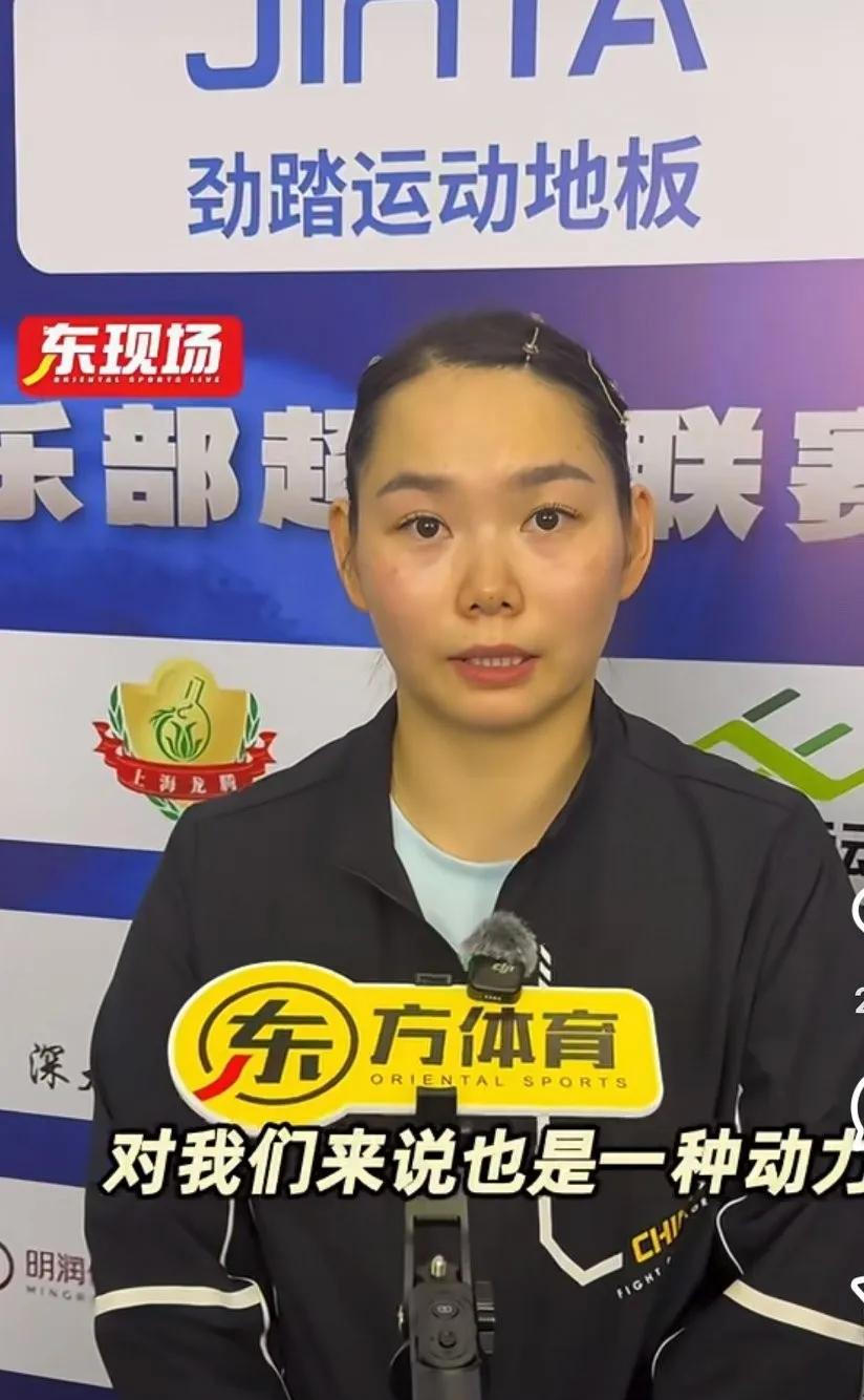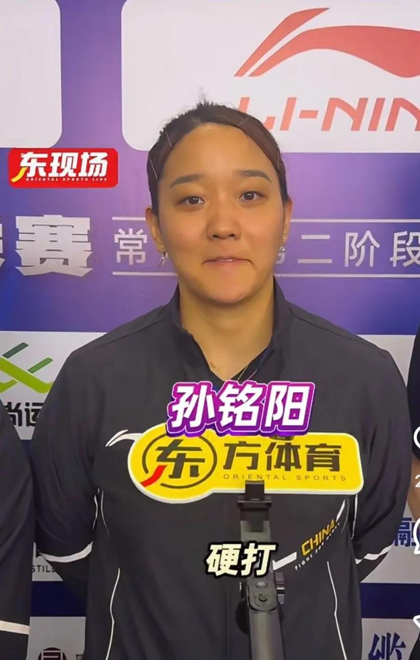 孙铭阳也很有梗,她说硬打。 在昨天的比赛结束后,东方卫视的记者采访上海龙腾队,当
